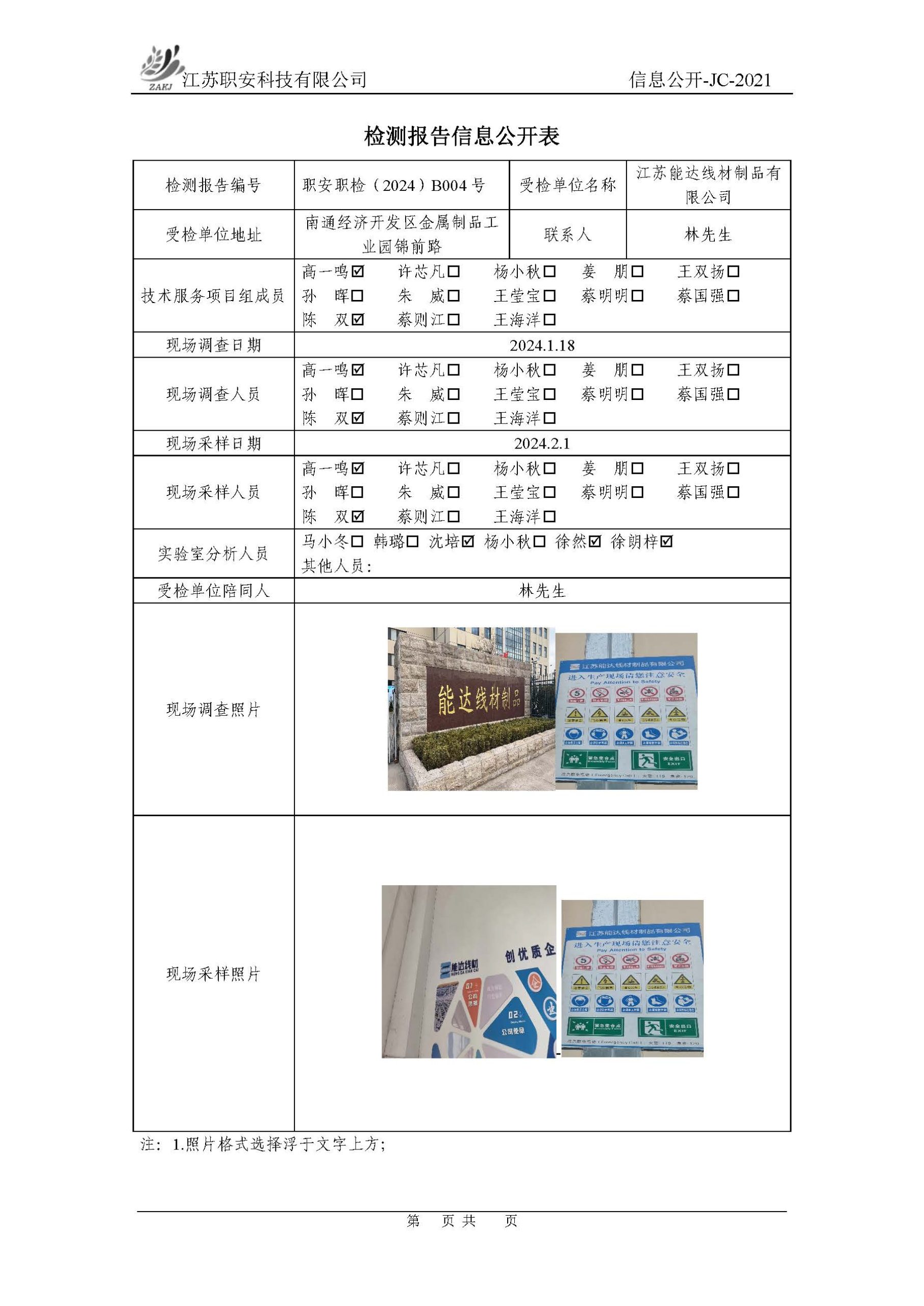 檢測報告公示