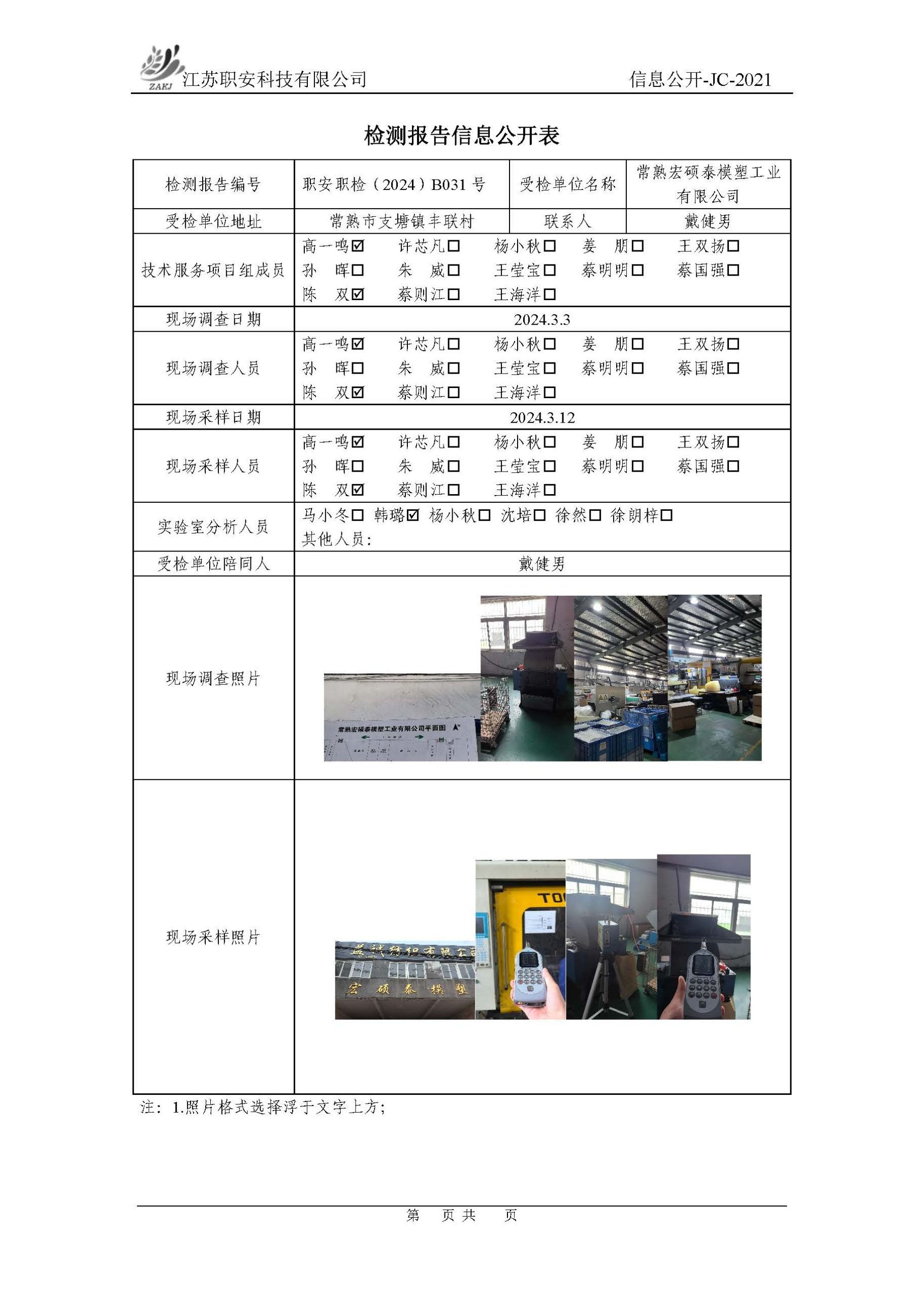 檢測報告公示