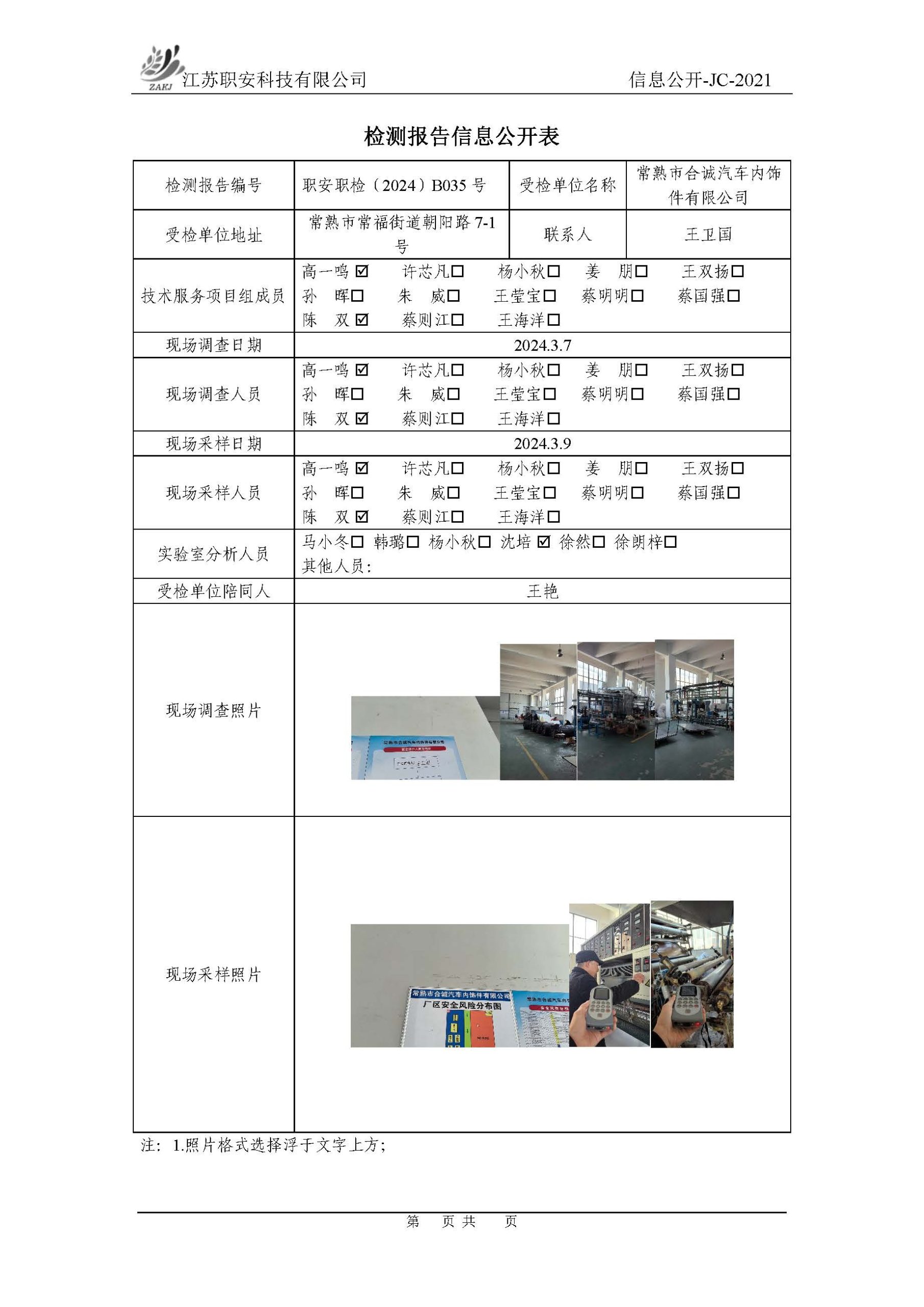 檢測報告公示