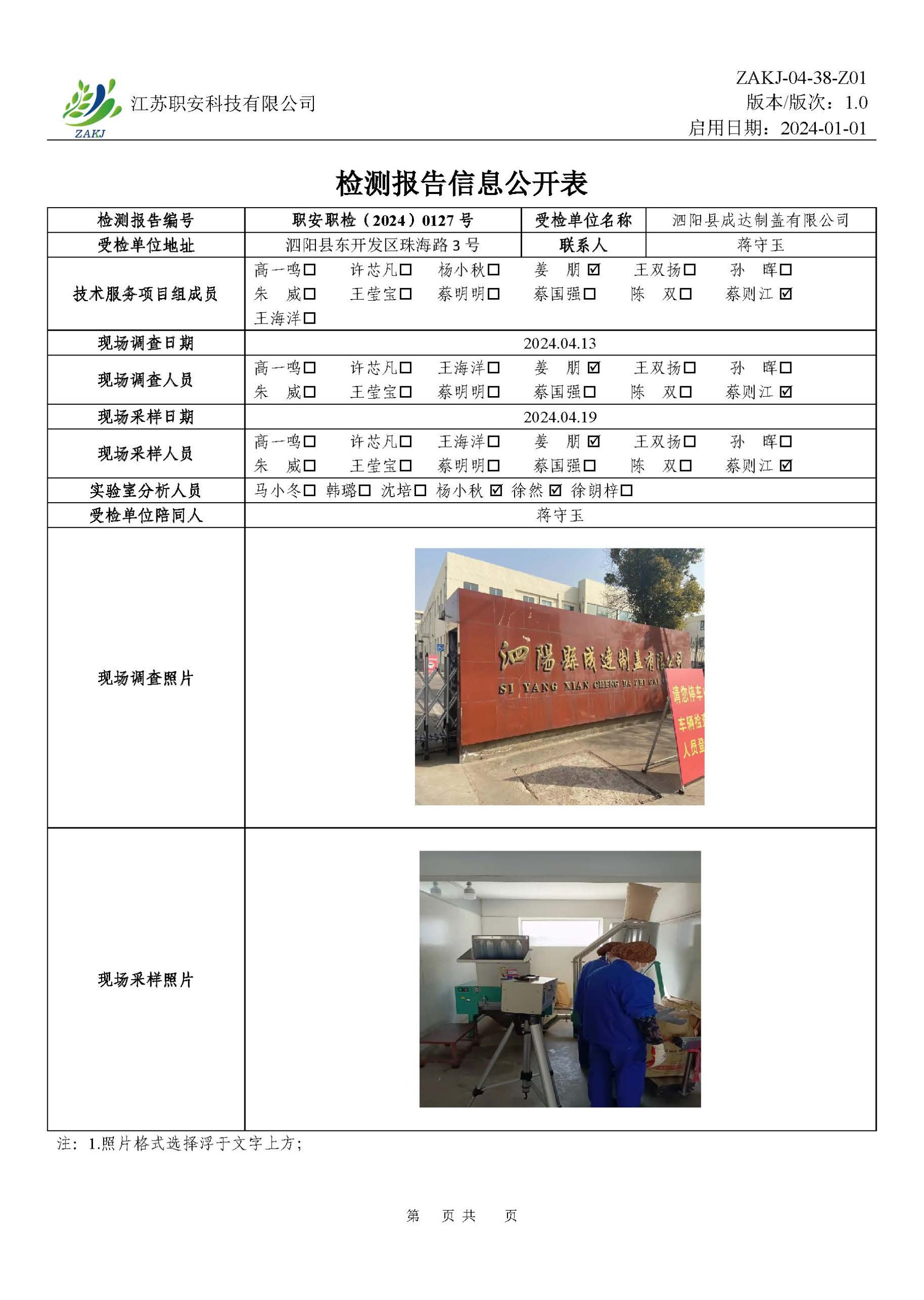檢測報告公示