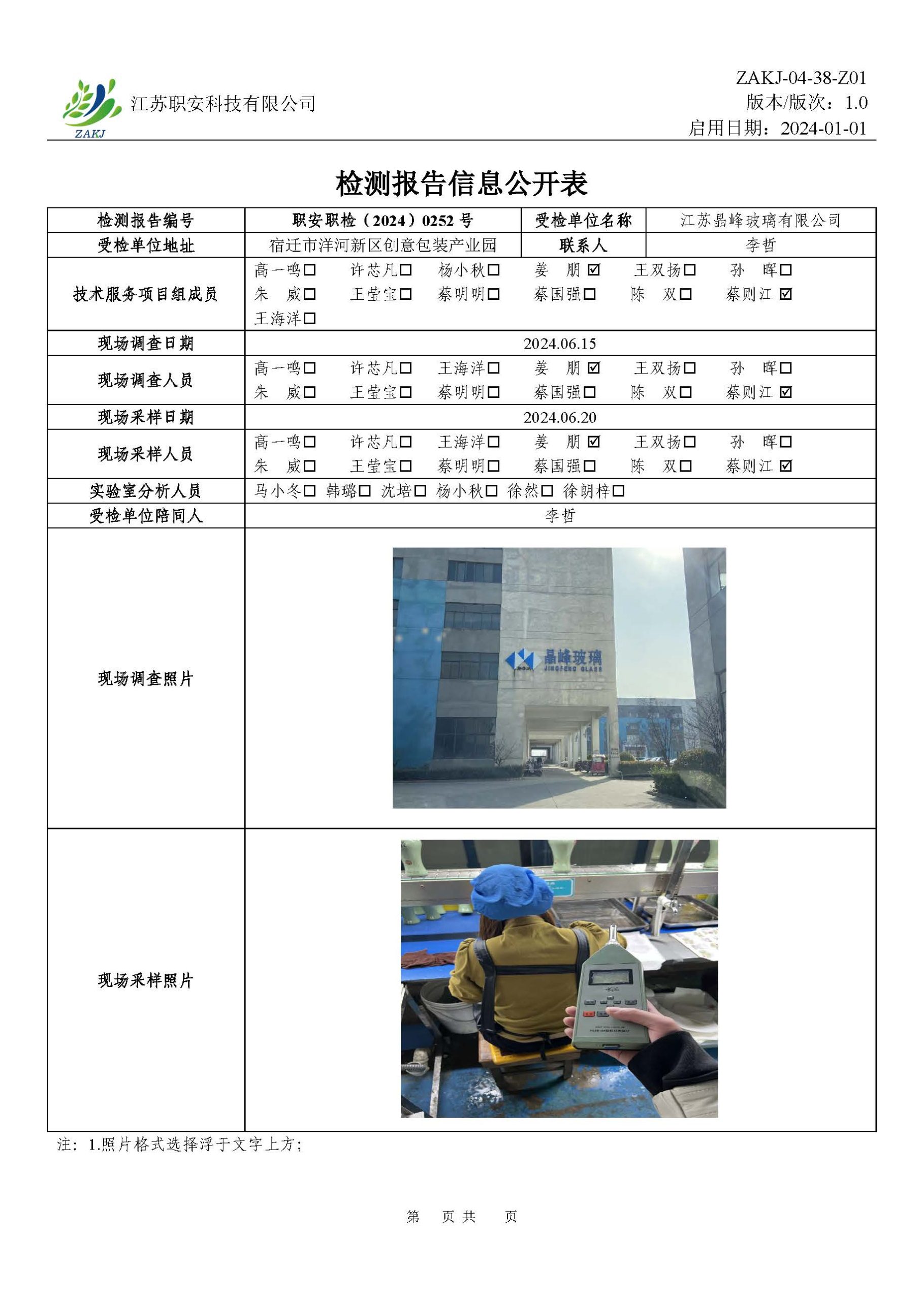 檢測報告公示