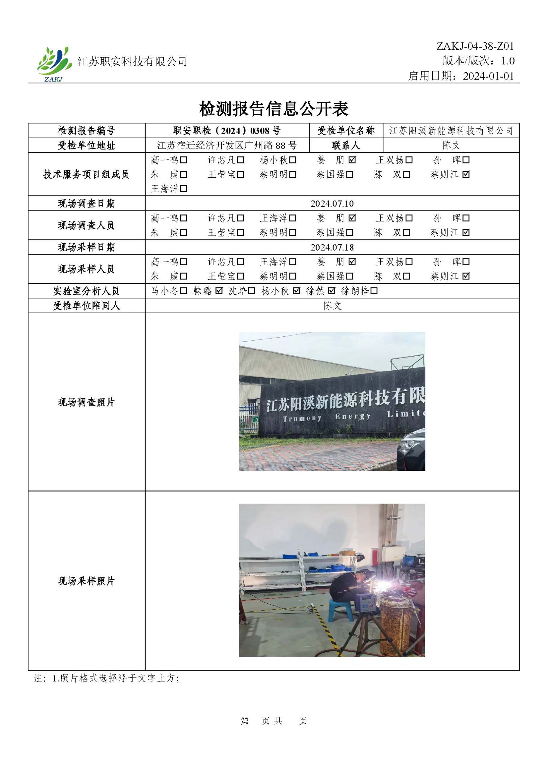 檢測報告公示