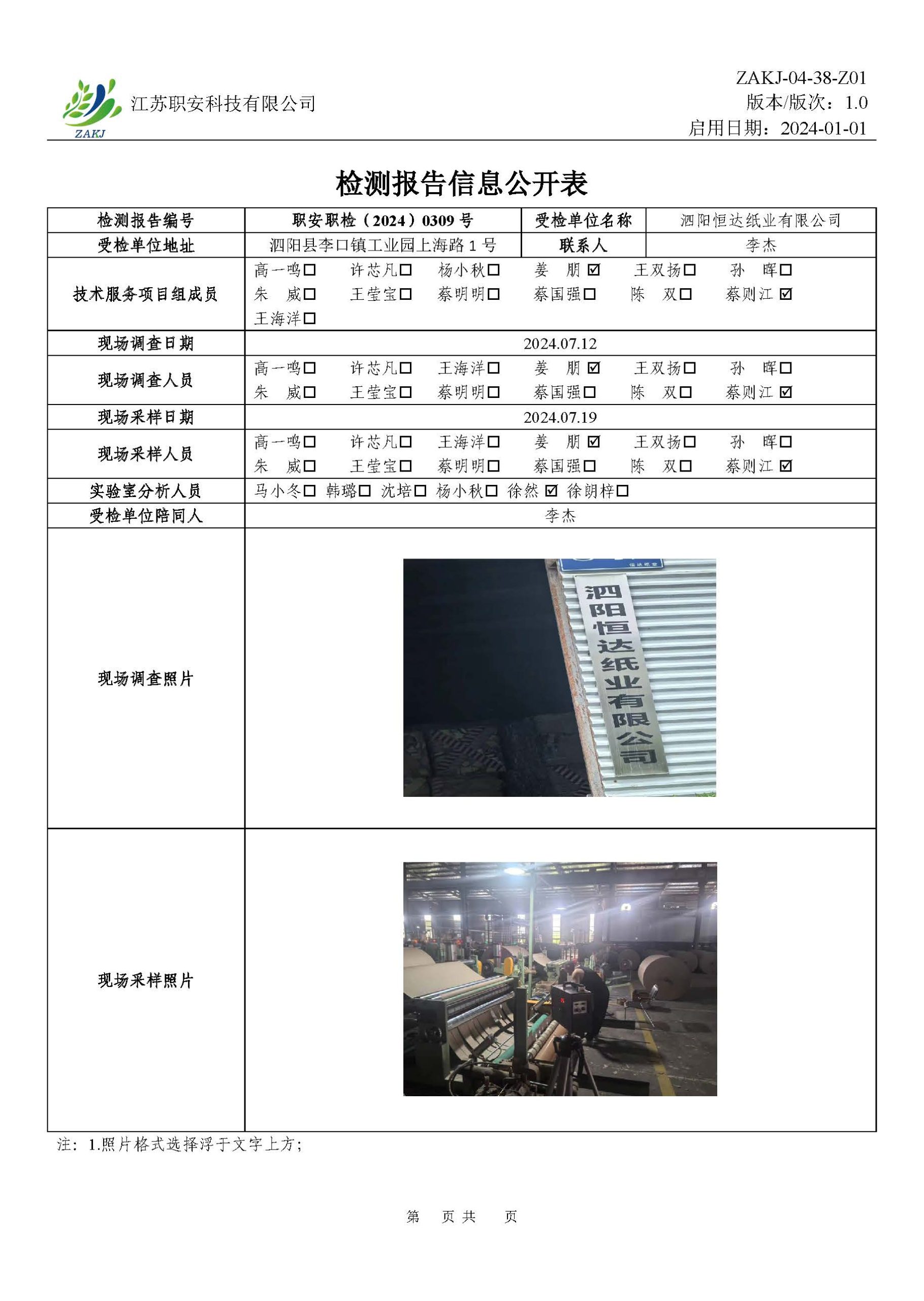 檢測報告公示