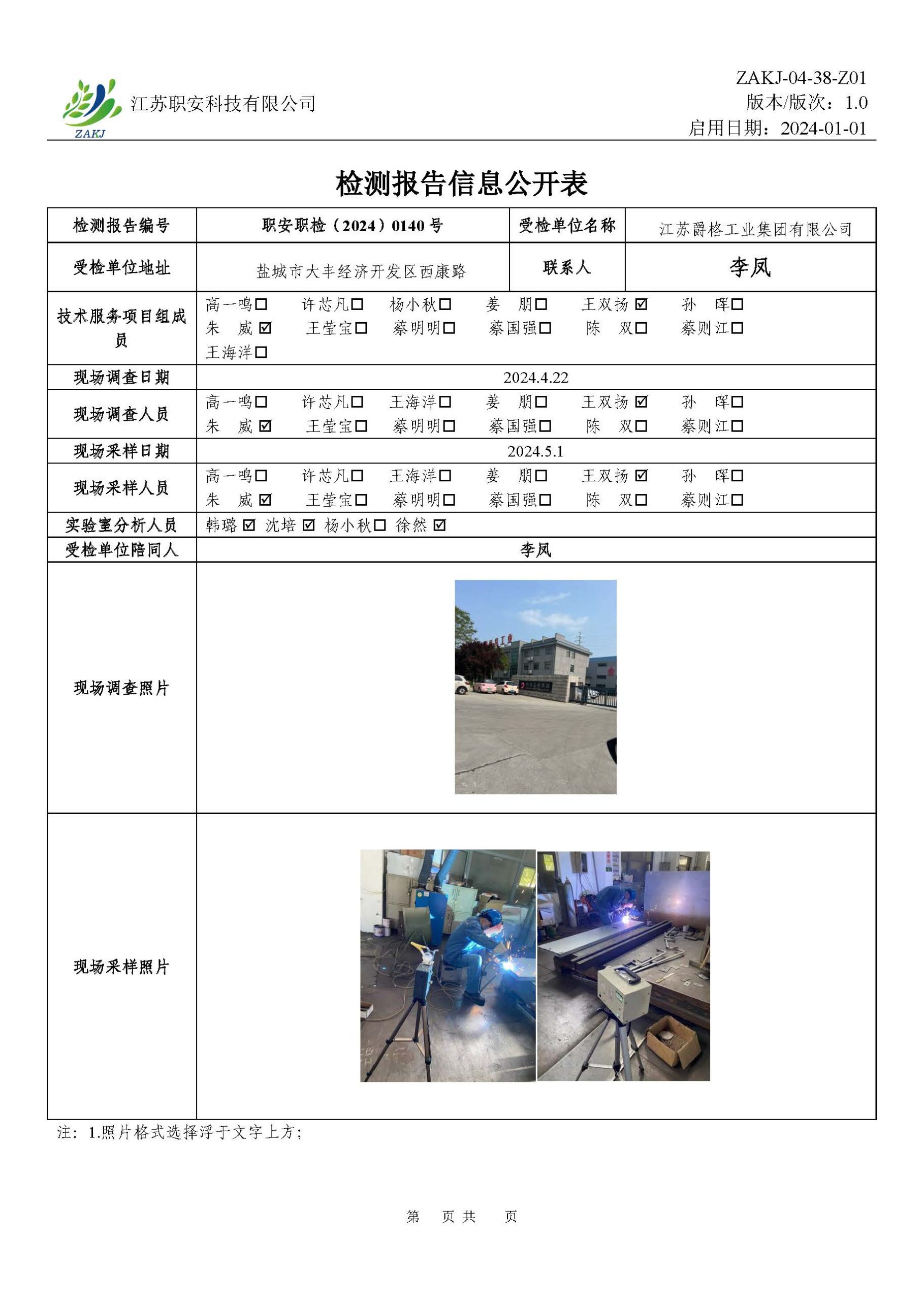檢測報告公示