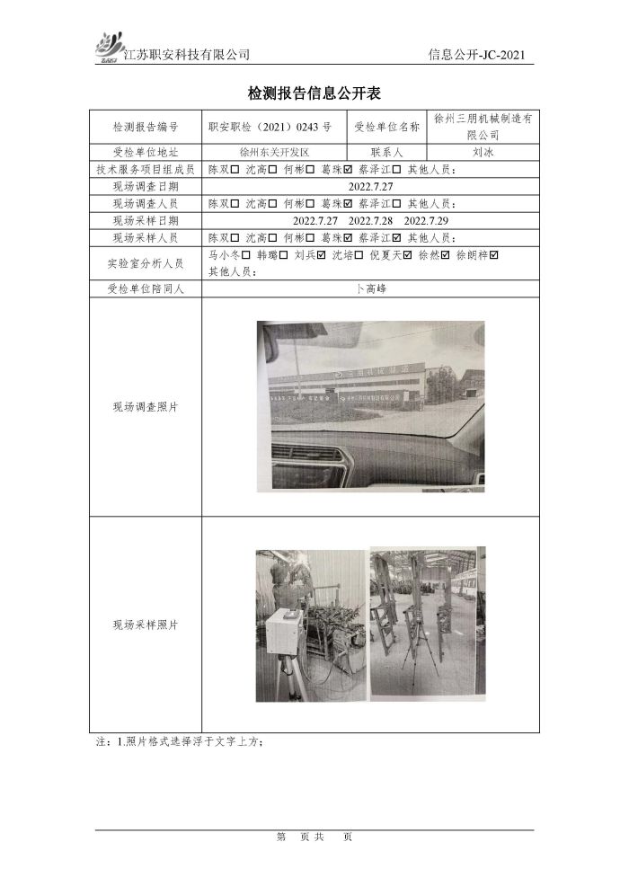 檢測報告公示