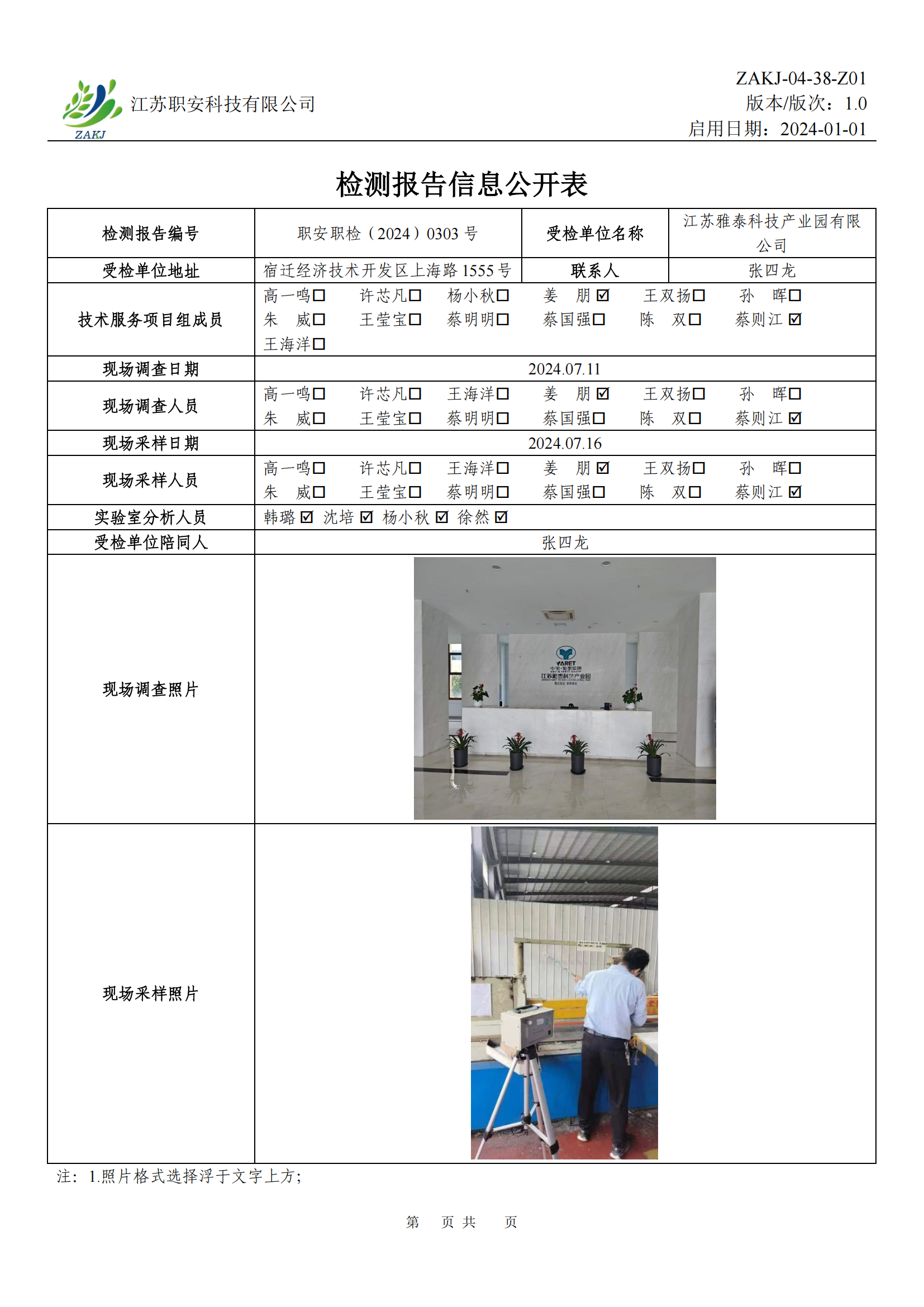 檢測報告公示