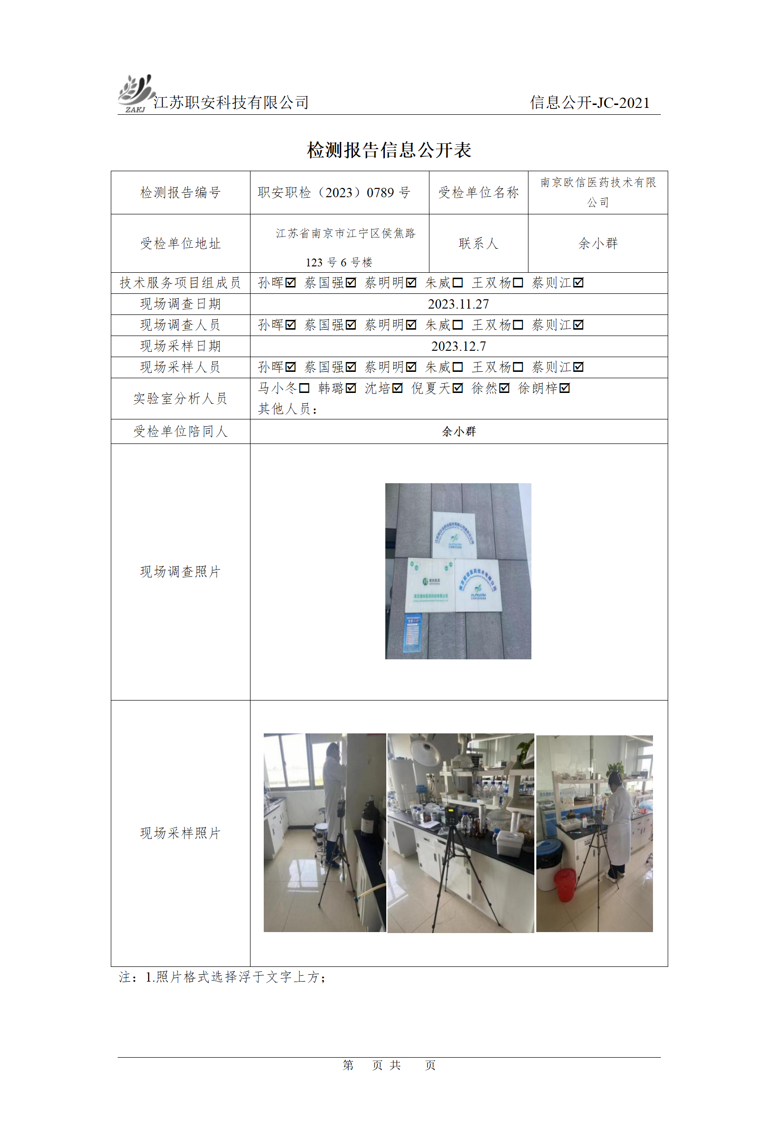 檢測報告公示