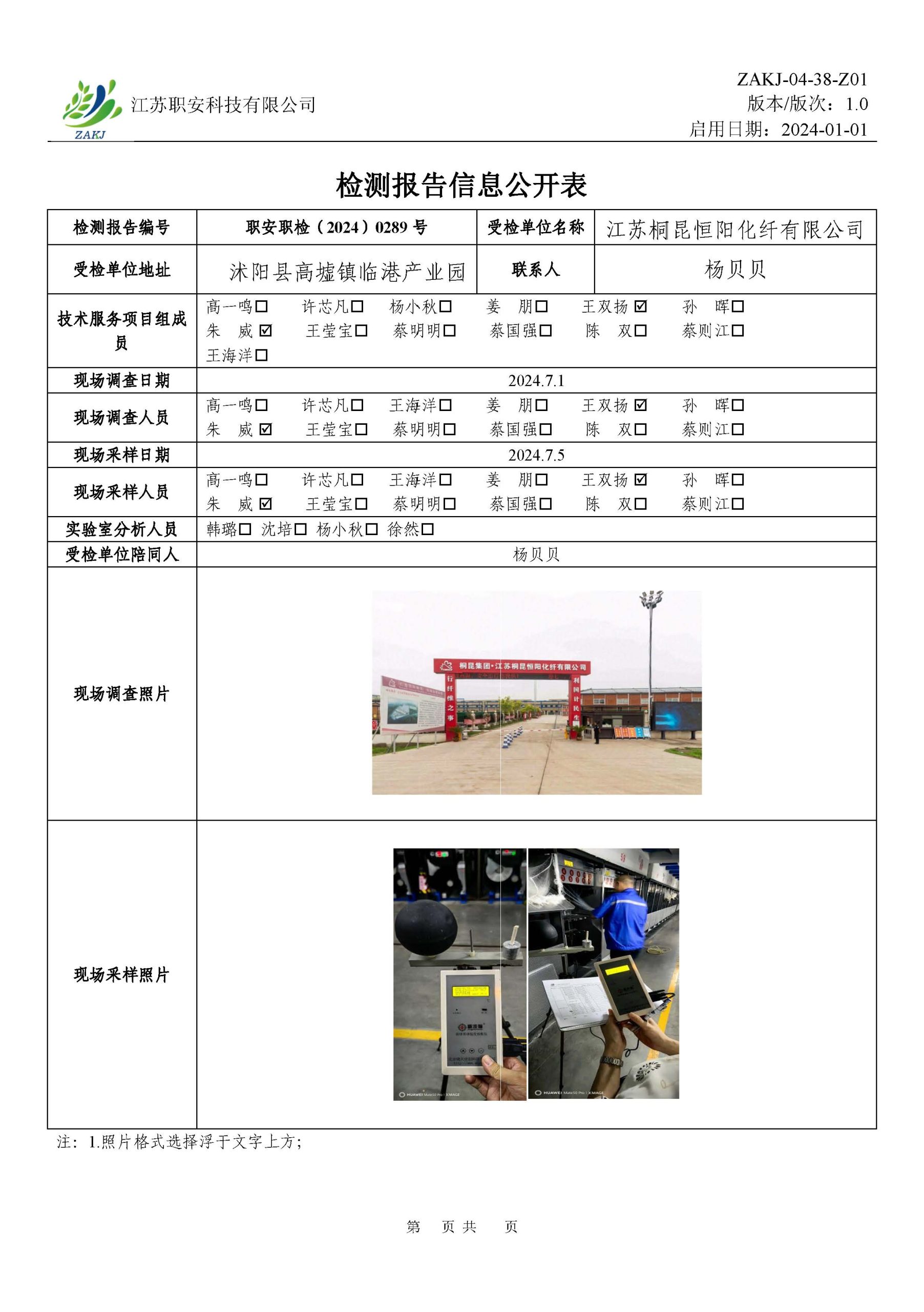 檢測報告公示
