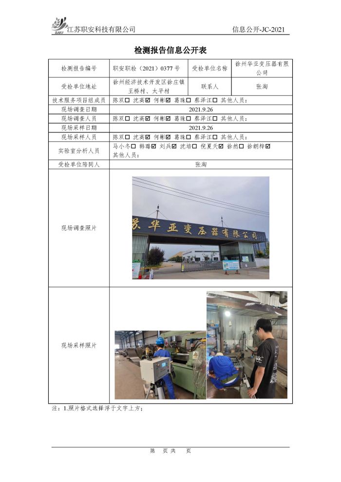 檢測報告公示