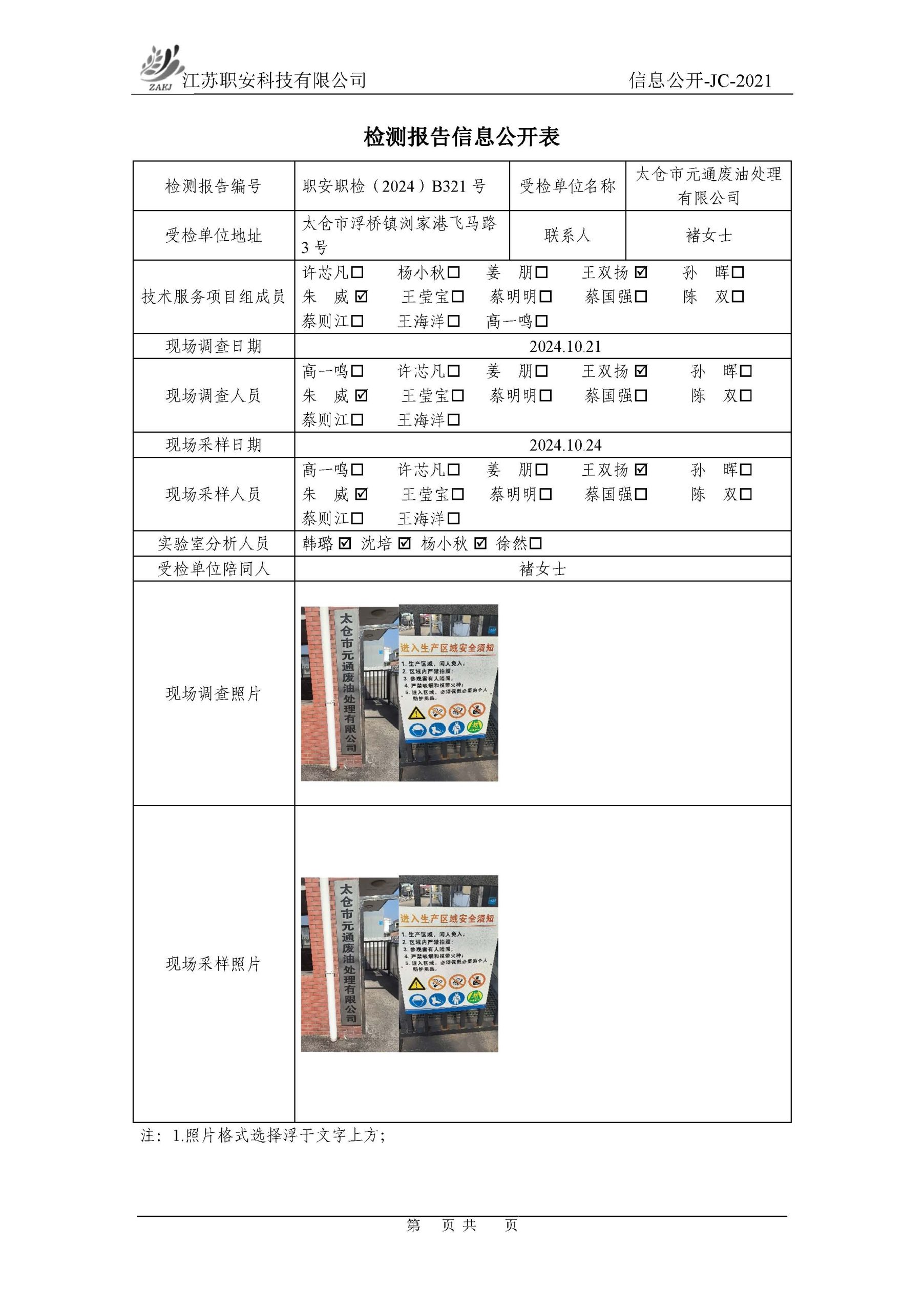 檢測報告公示