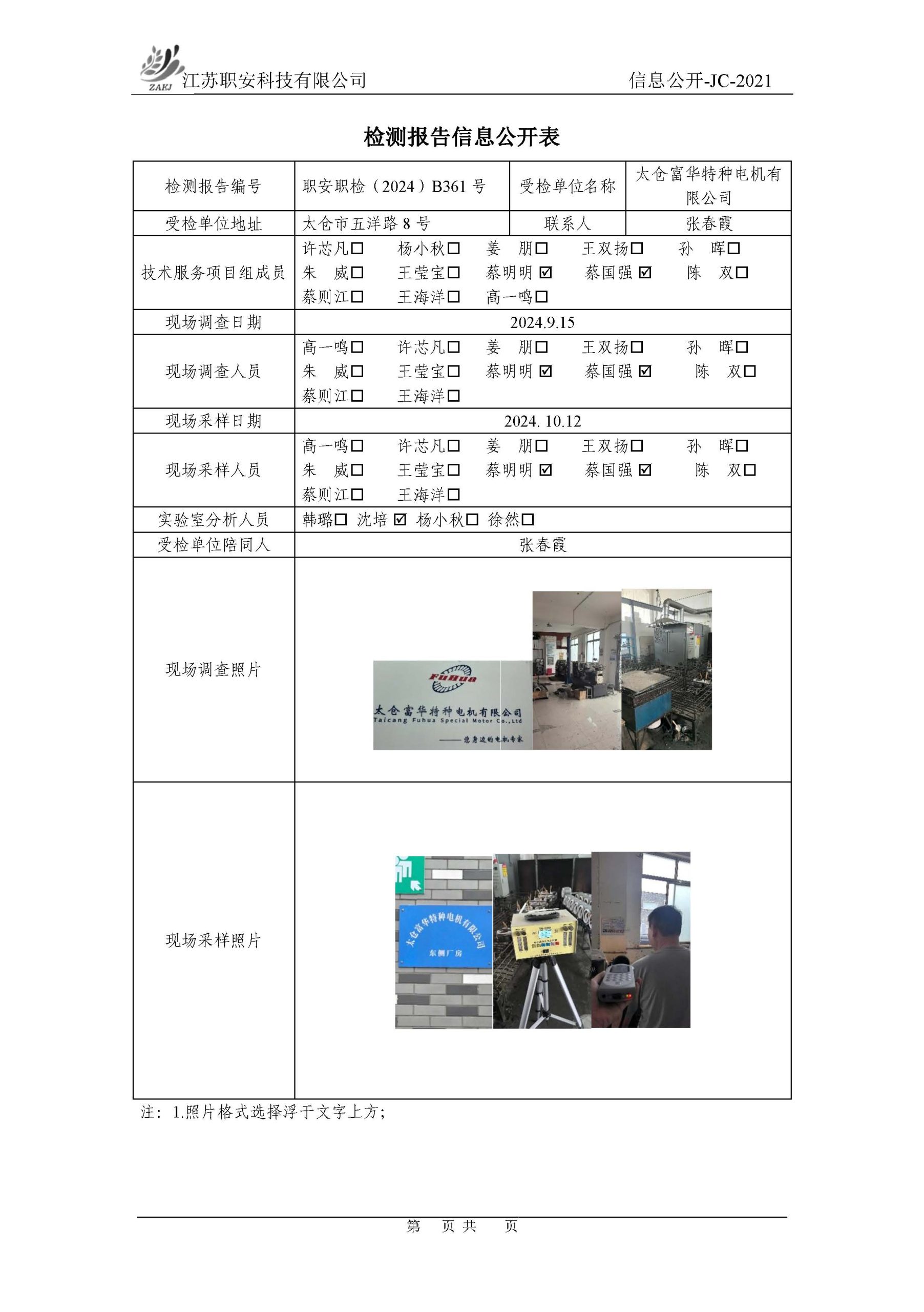 檢測報告公示