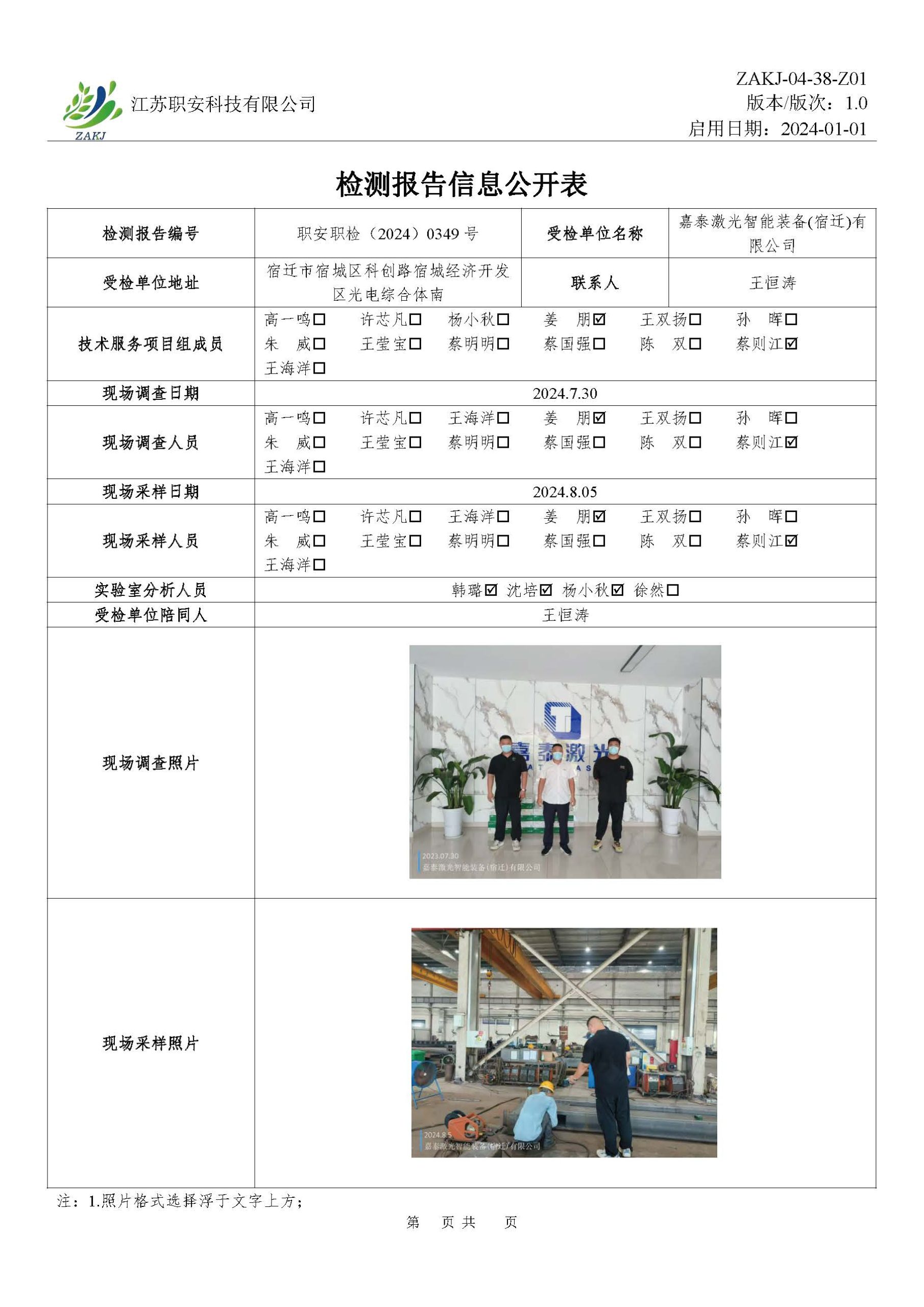 檢測報告公示