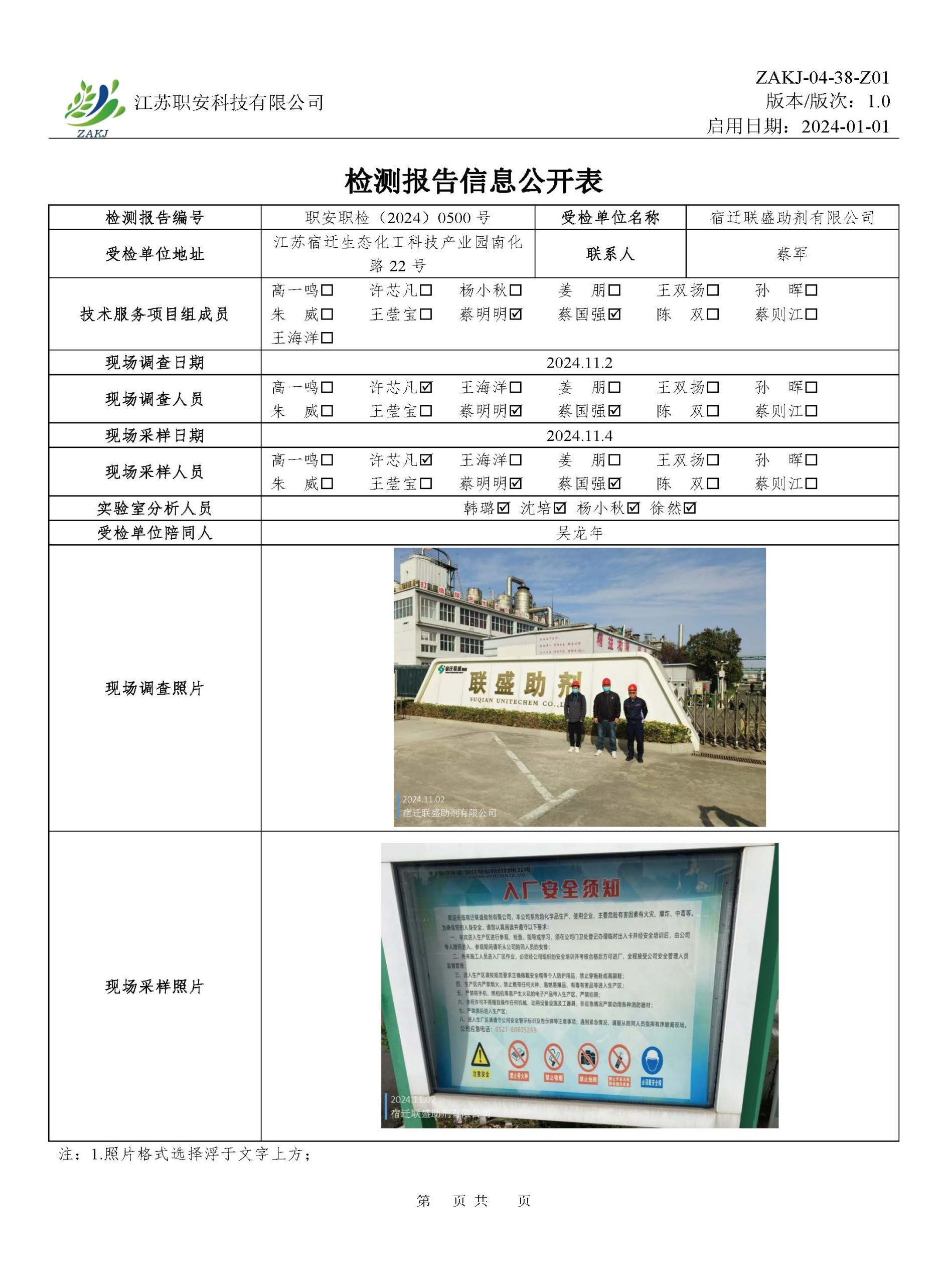 檢測報告公示