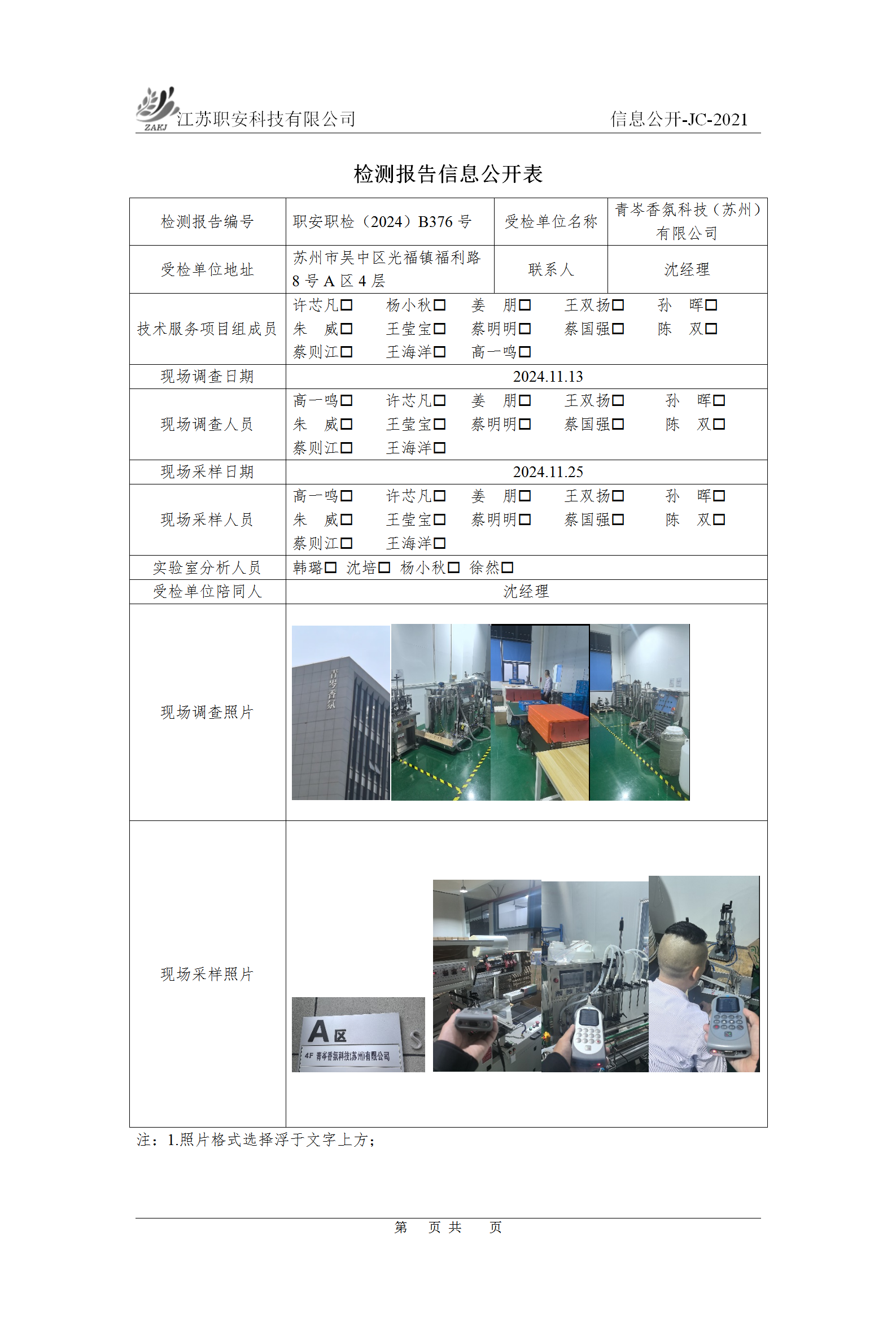 檢測報告公示