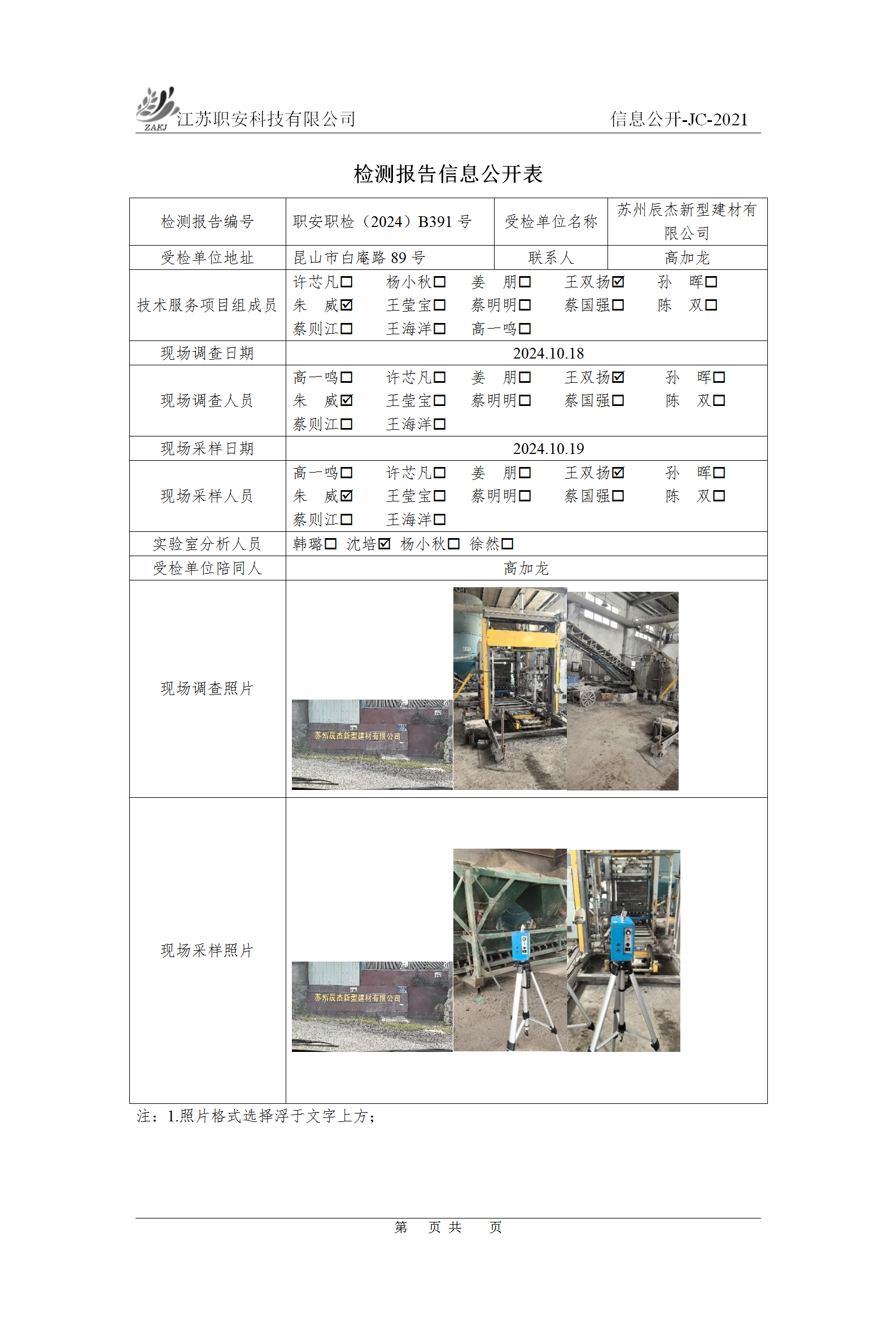 檢測報告公示