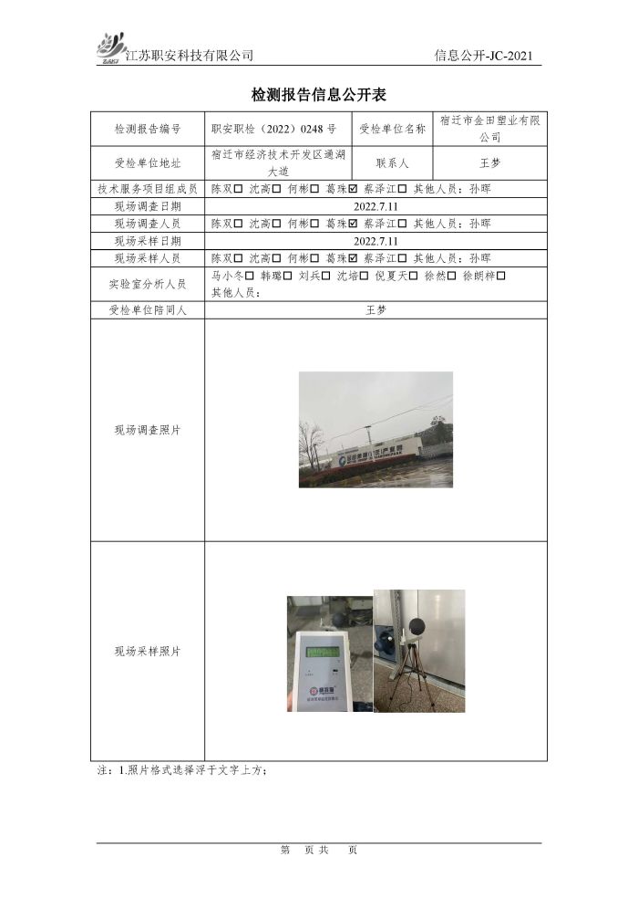 檢測報告公示