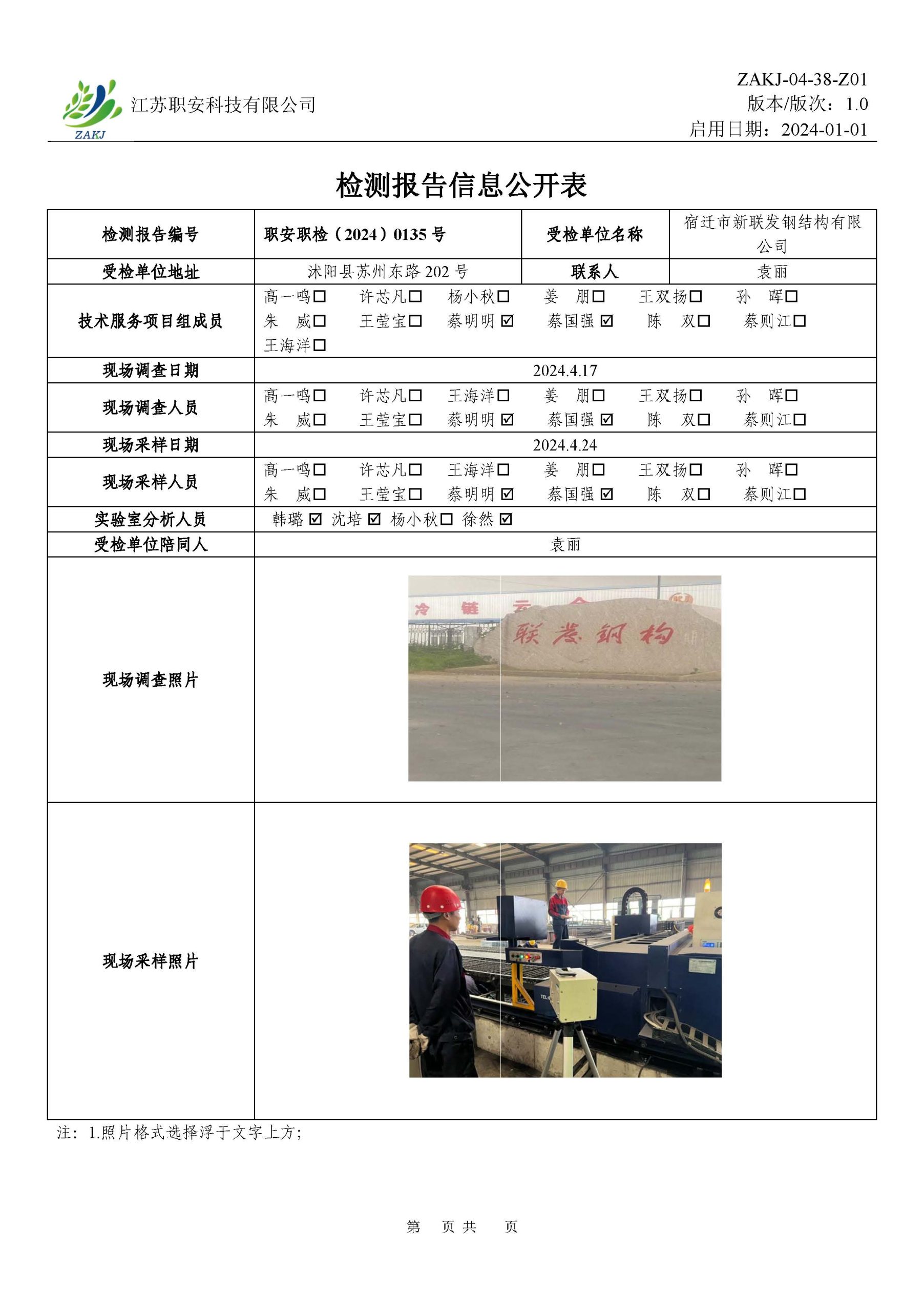 檢測報告公示