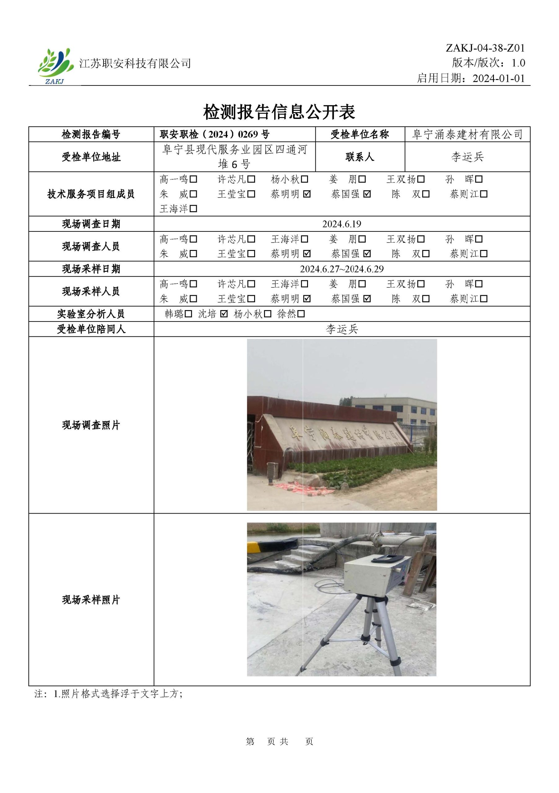 檢測報告公示