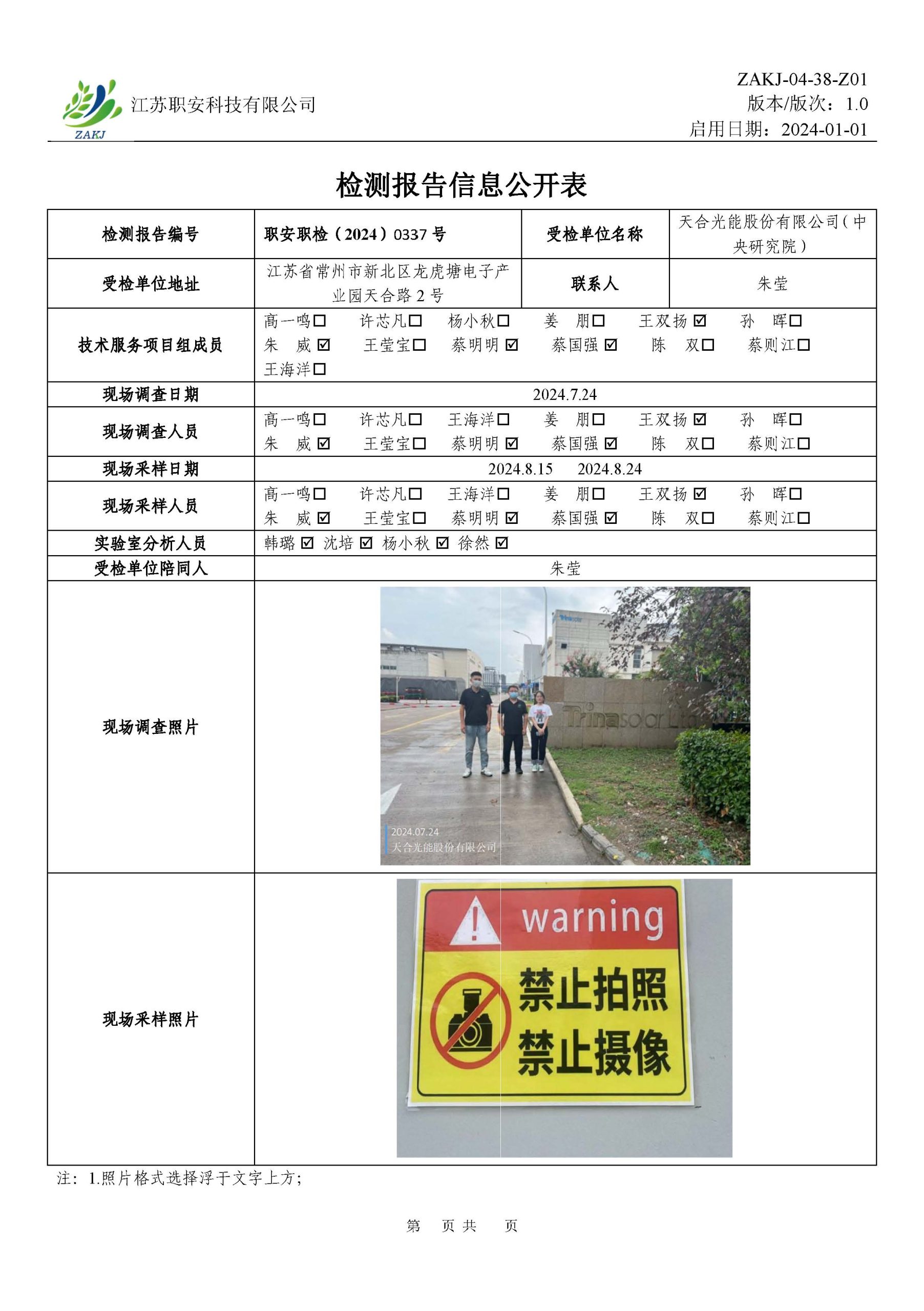檢測報告公示