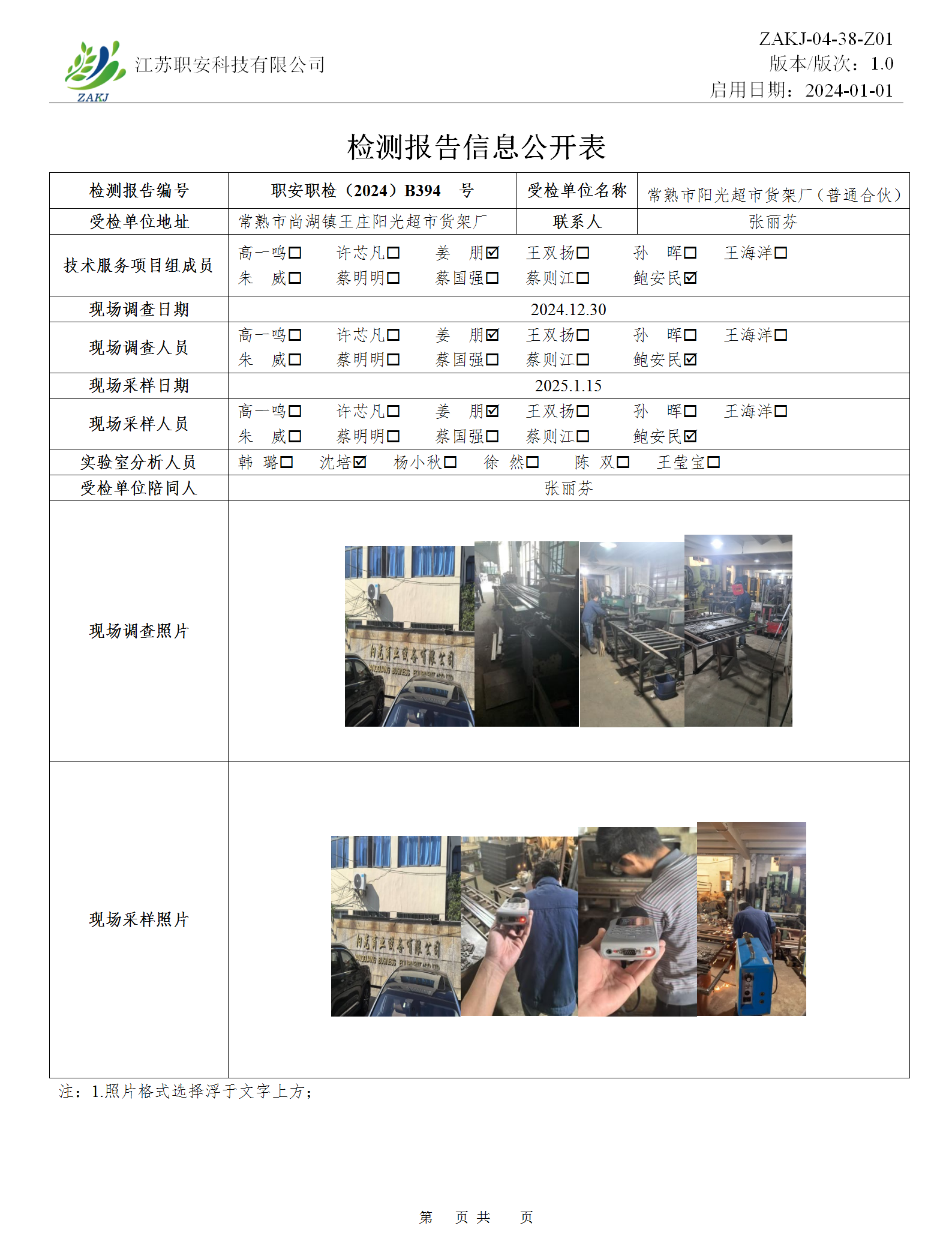 檢測報告公示