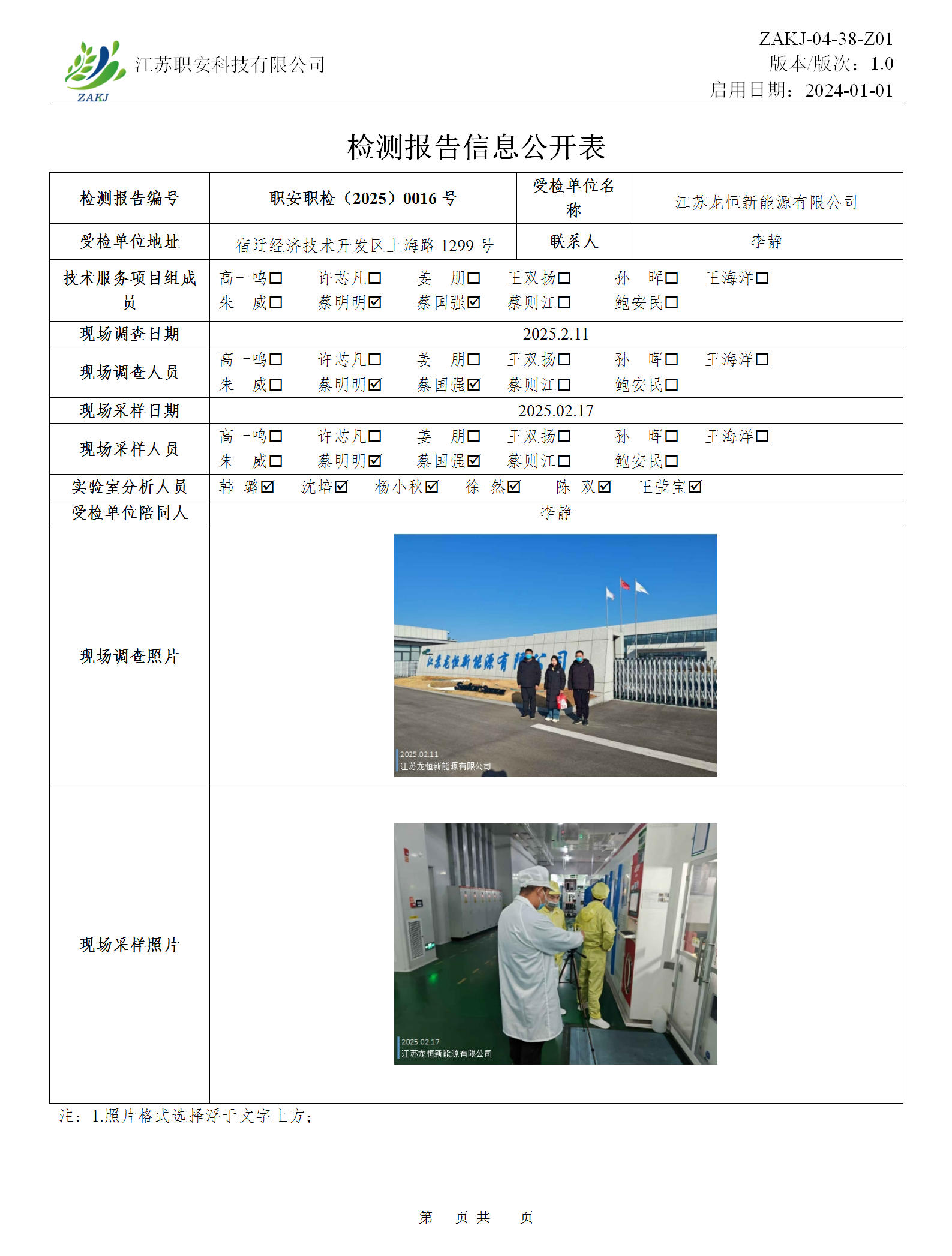 檢測報告公示