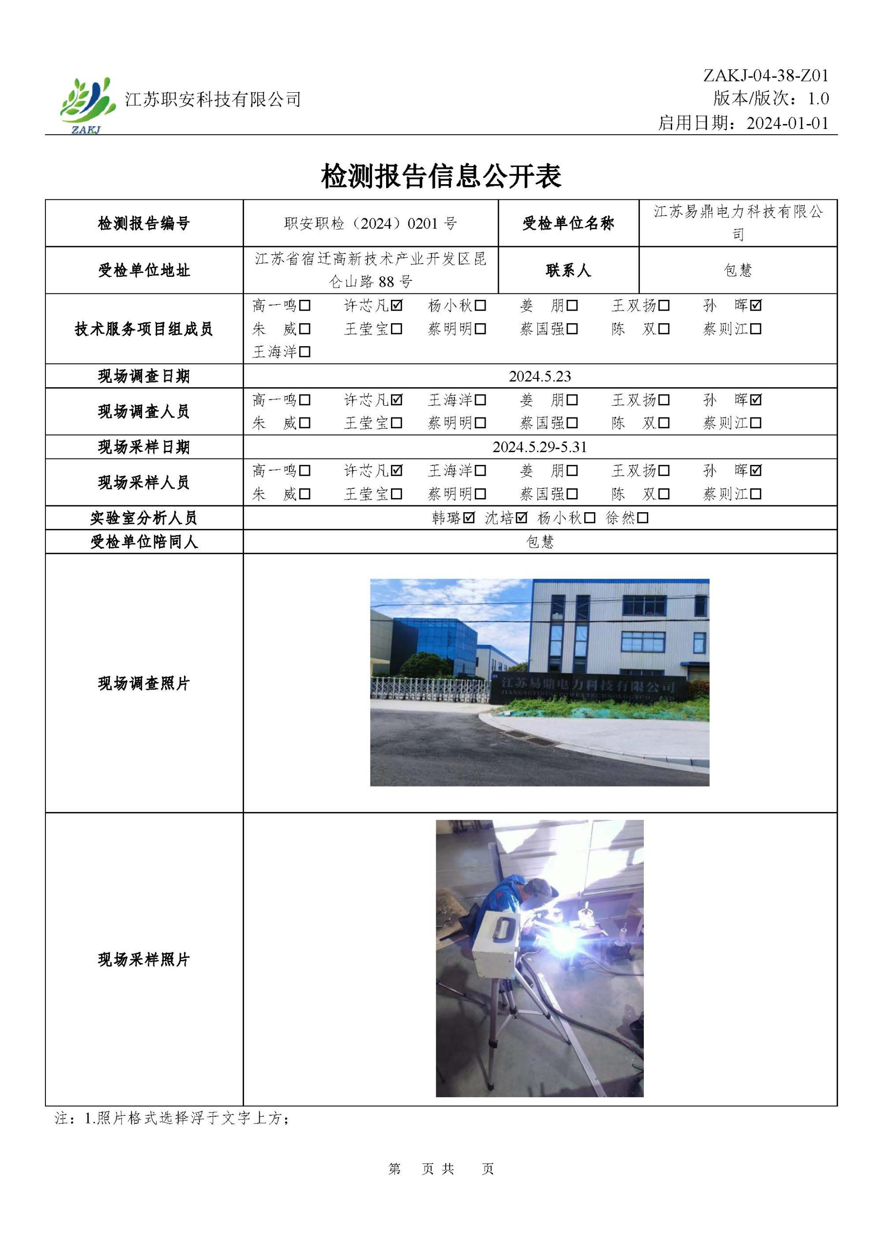 檢測報告公示