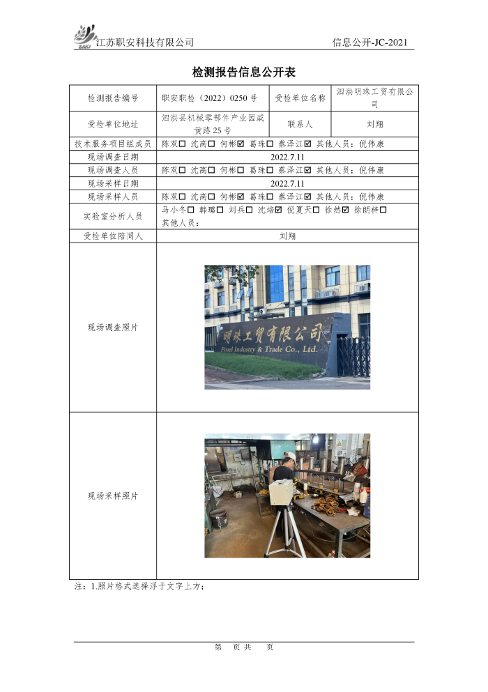 檢測報告公示