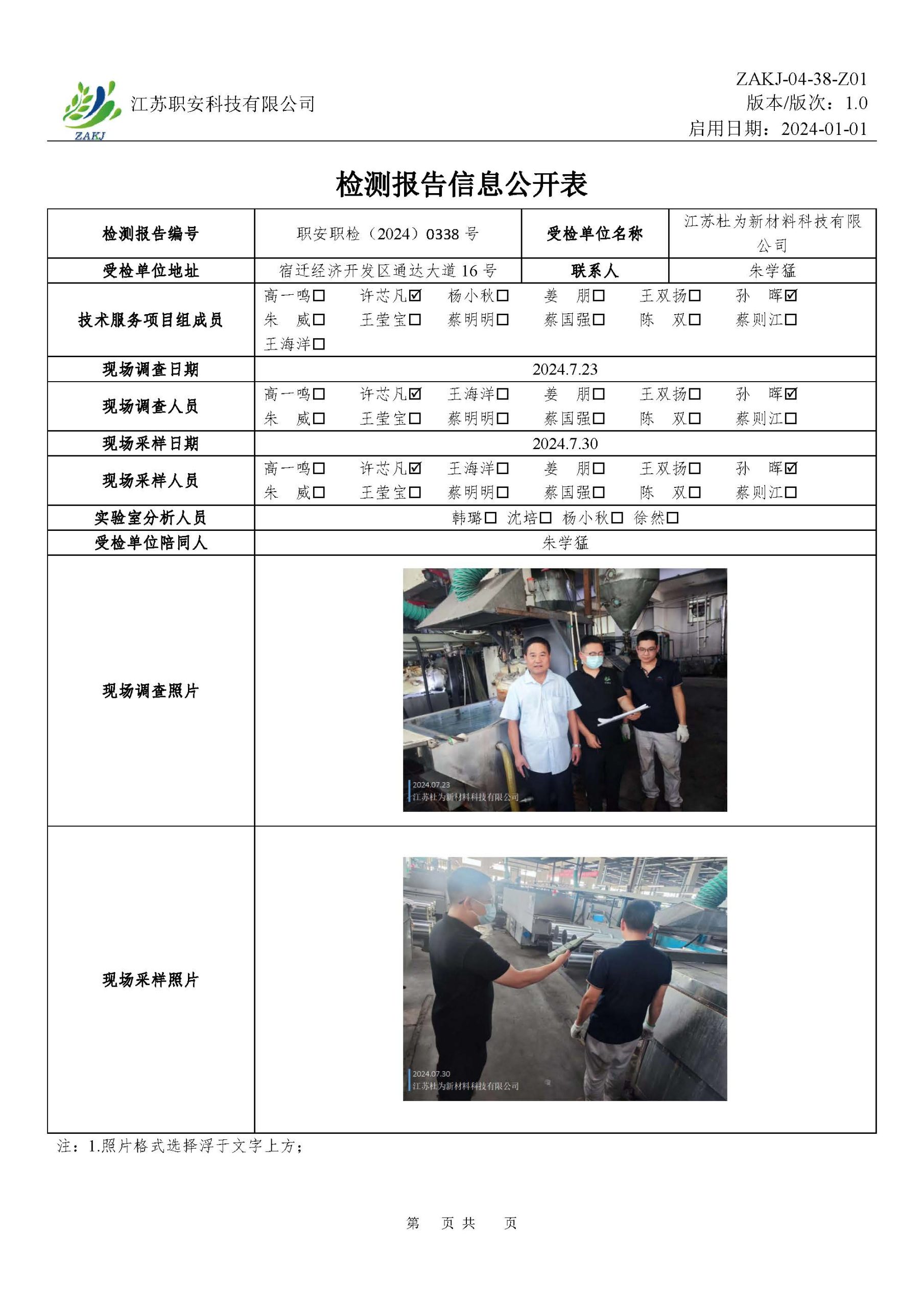 檢測報告公示