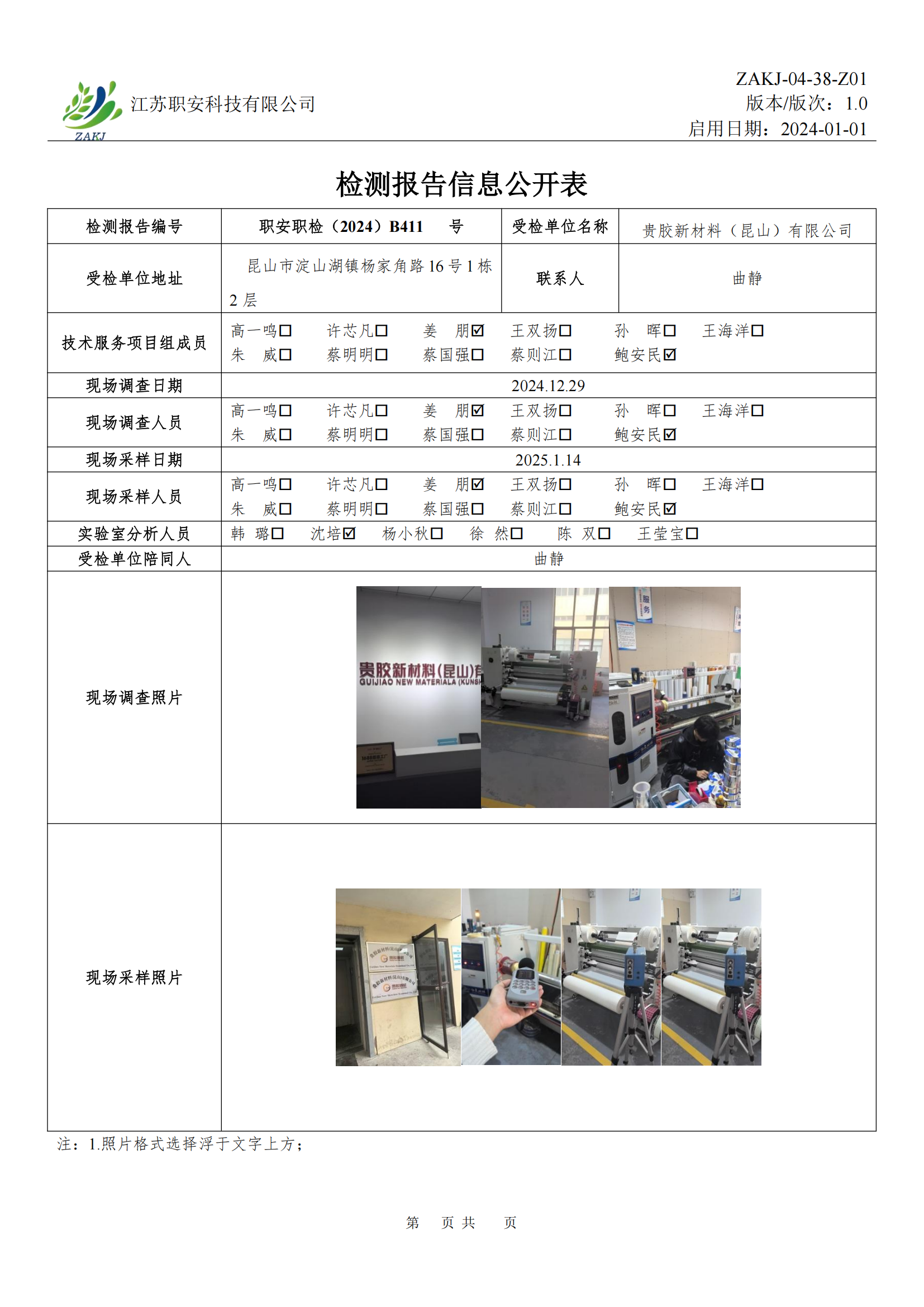 檢測報告公示