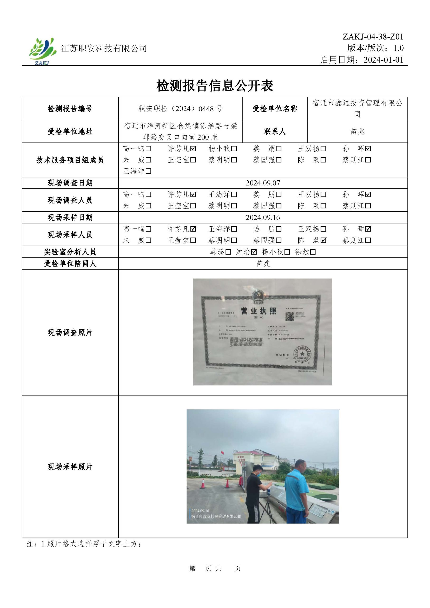 檢測報告公示