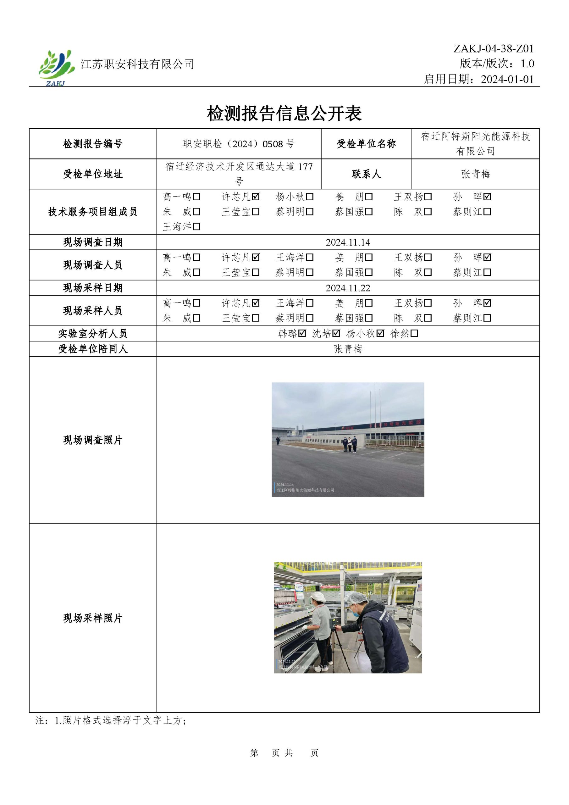 檢測報告公示