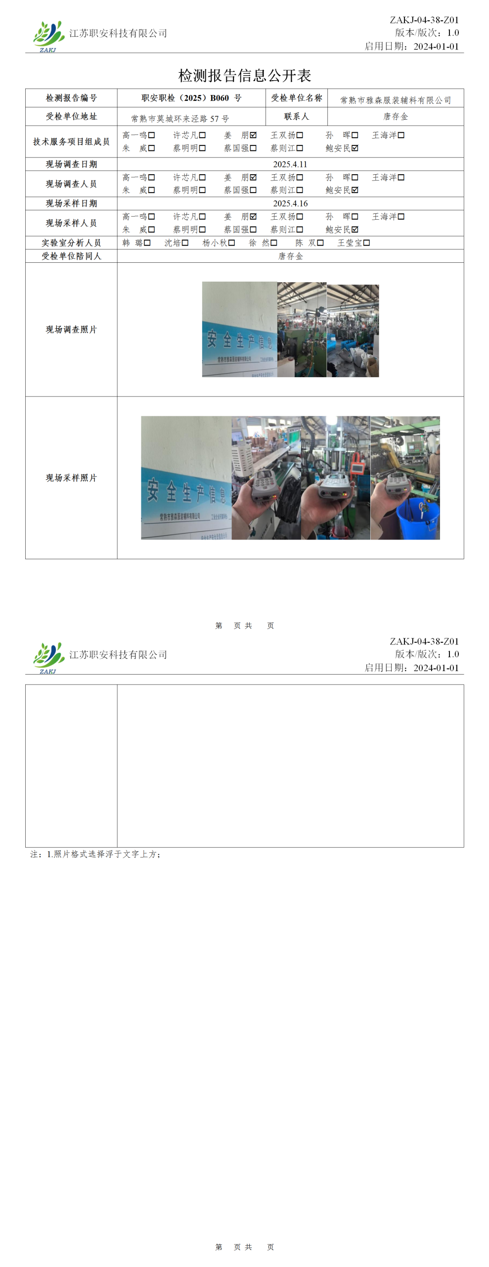 檢測報告公示