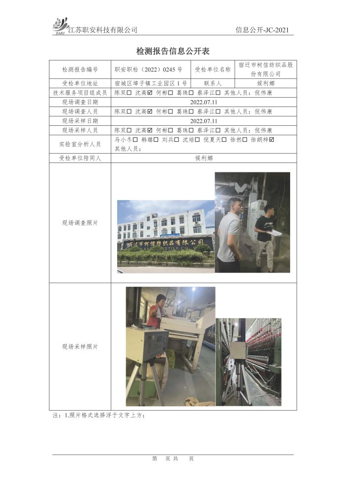 檢測報告公示