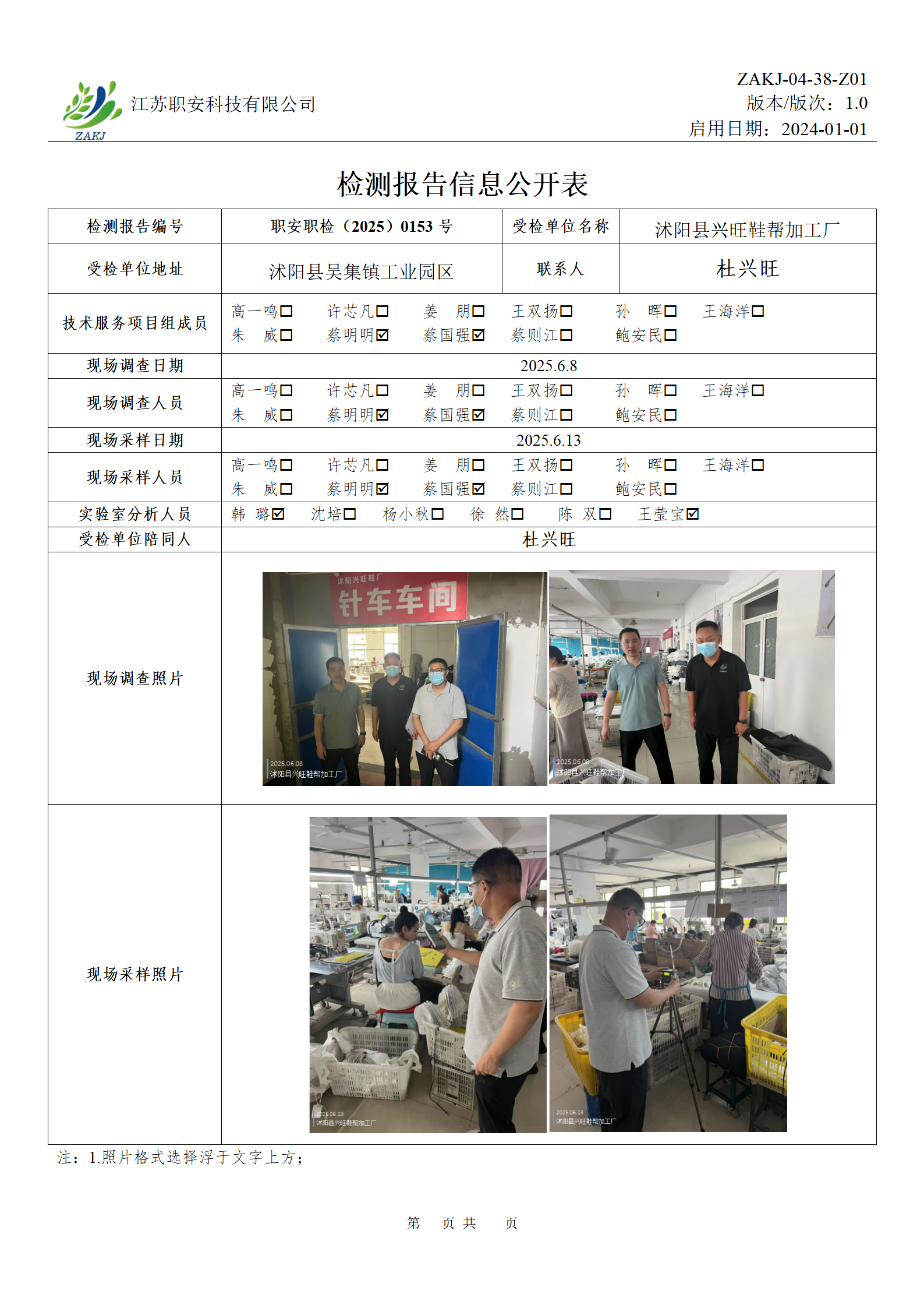 檢測報告公示