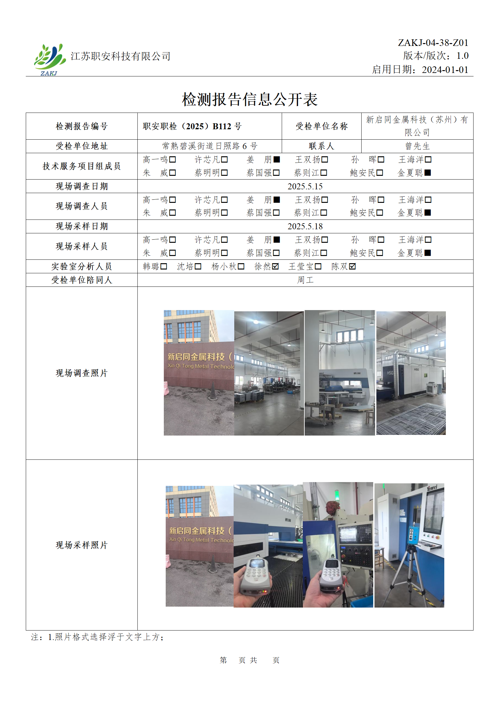 檢測報告公示