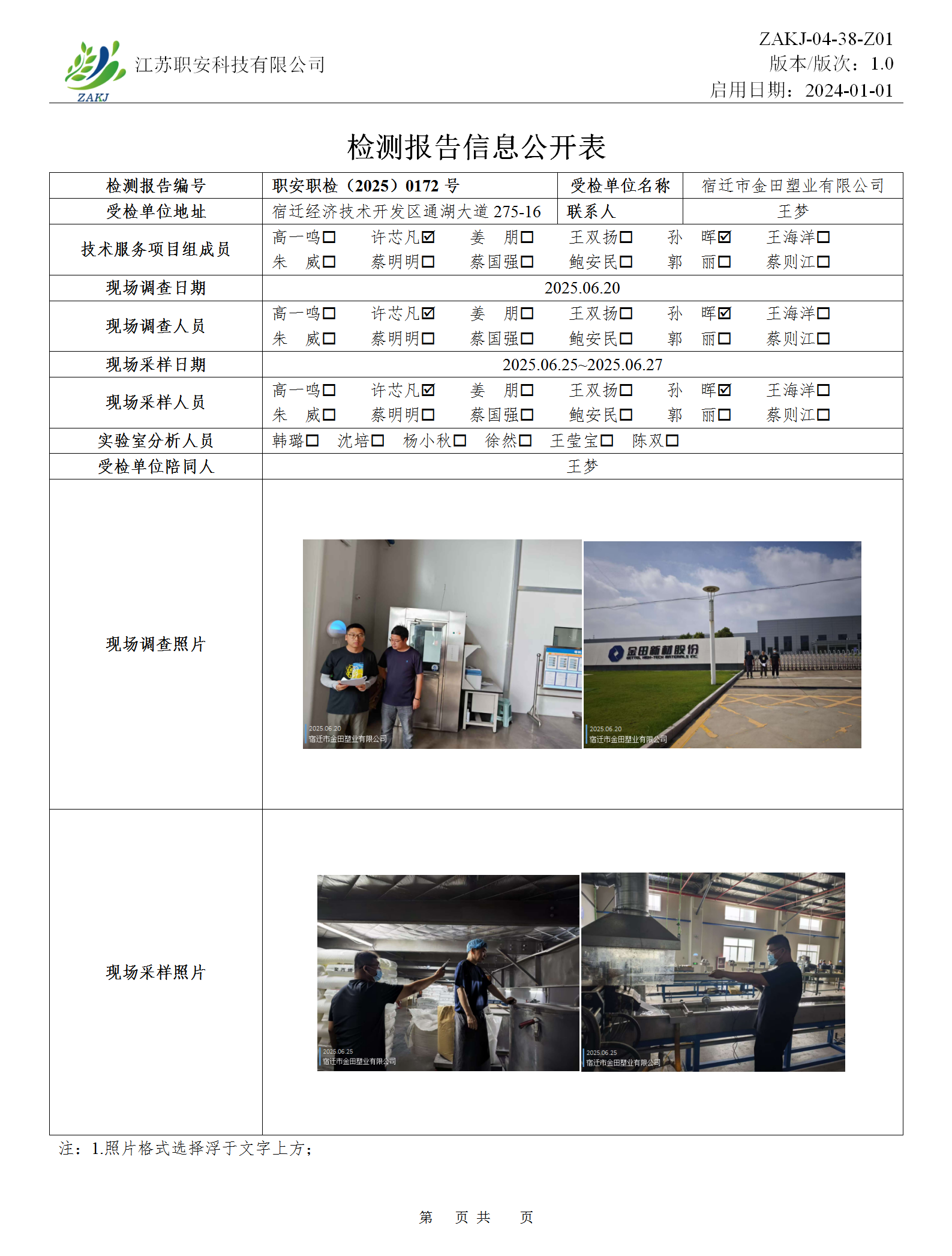 檢測報告公示
