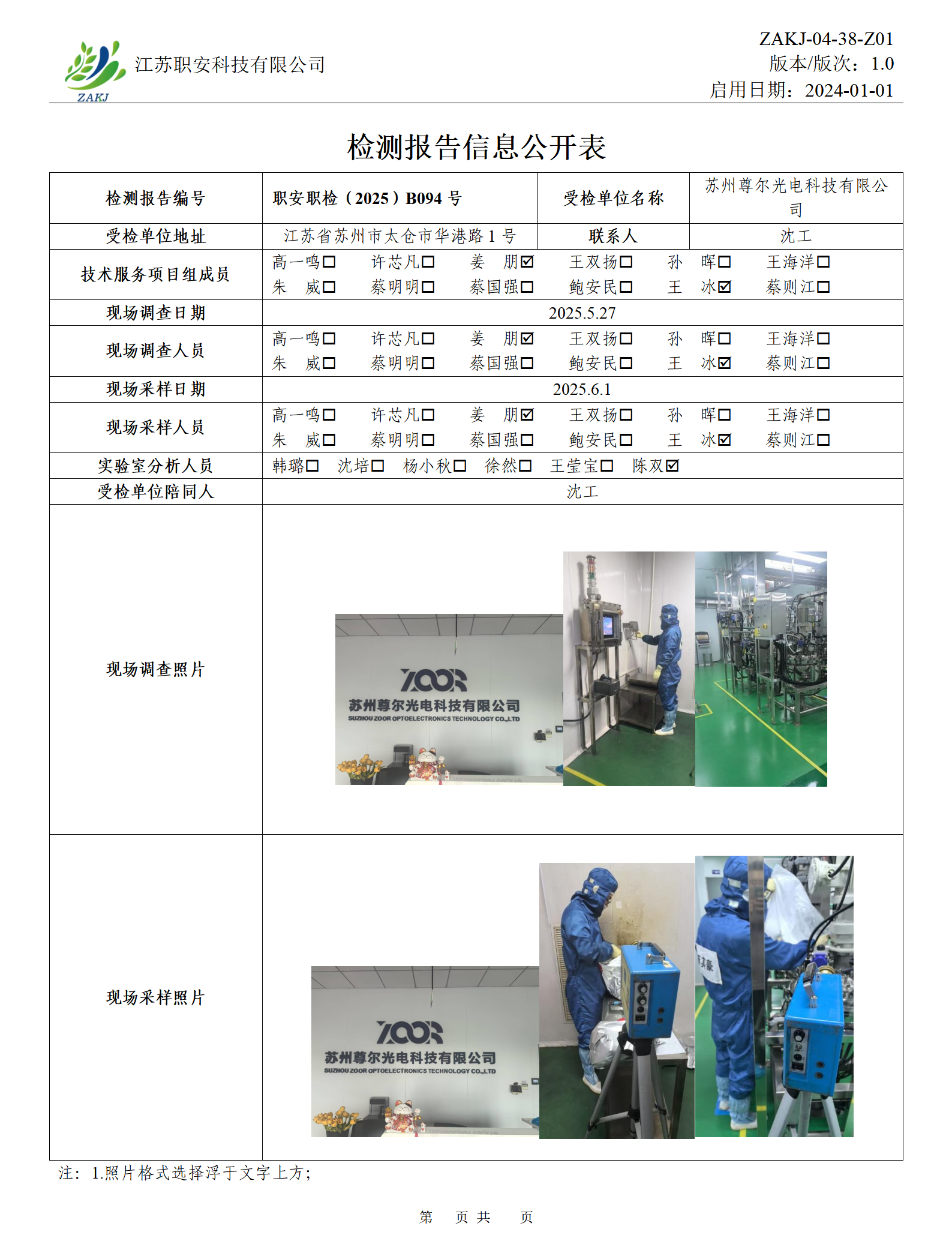 檢測報告公示