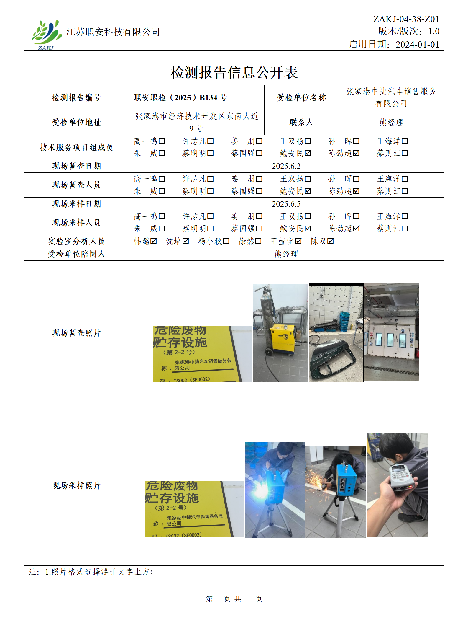 檢測報告公示