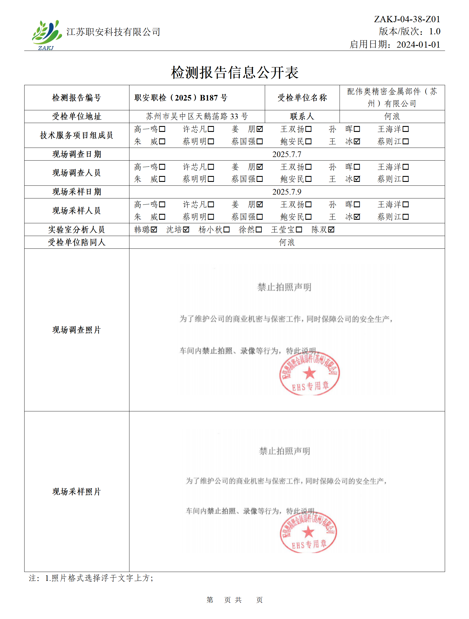 檢測報告公示