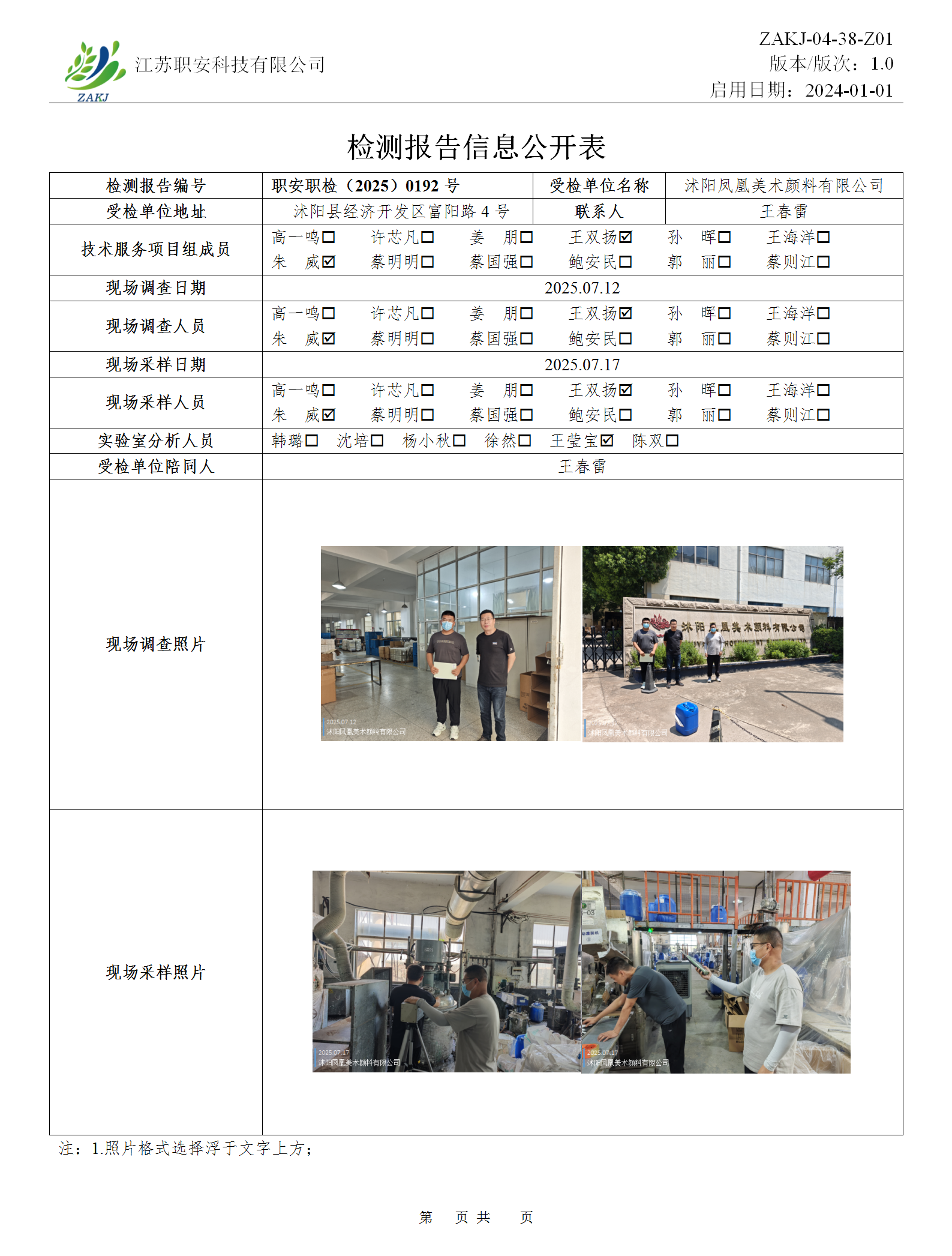 檢測報告公示