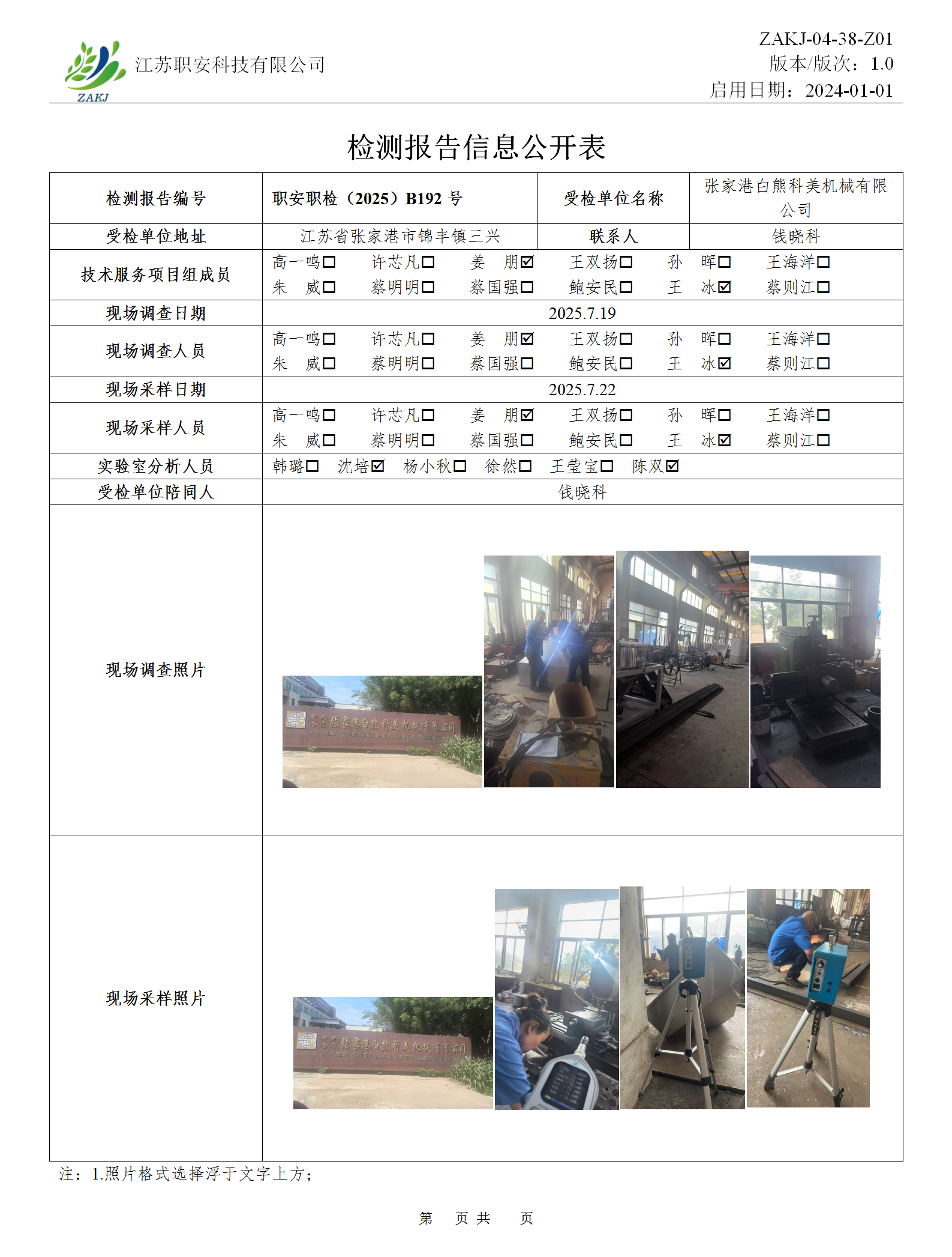 檢測報告公示