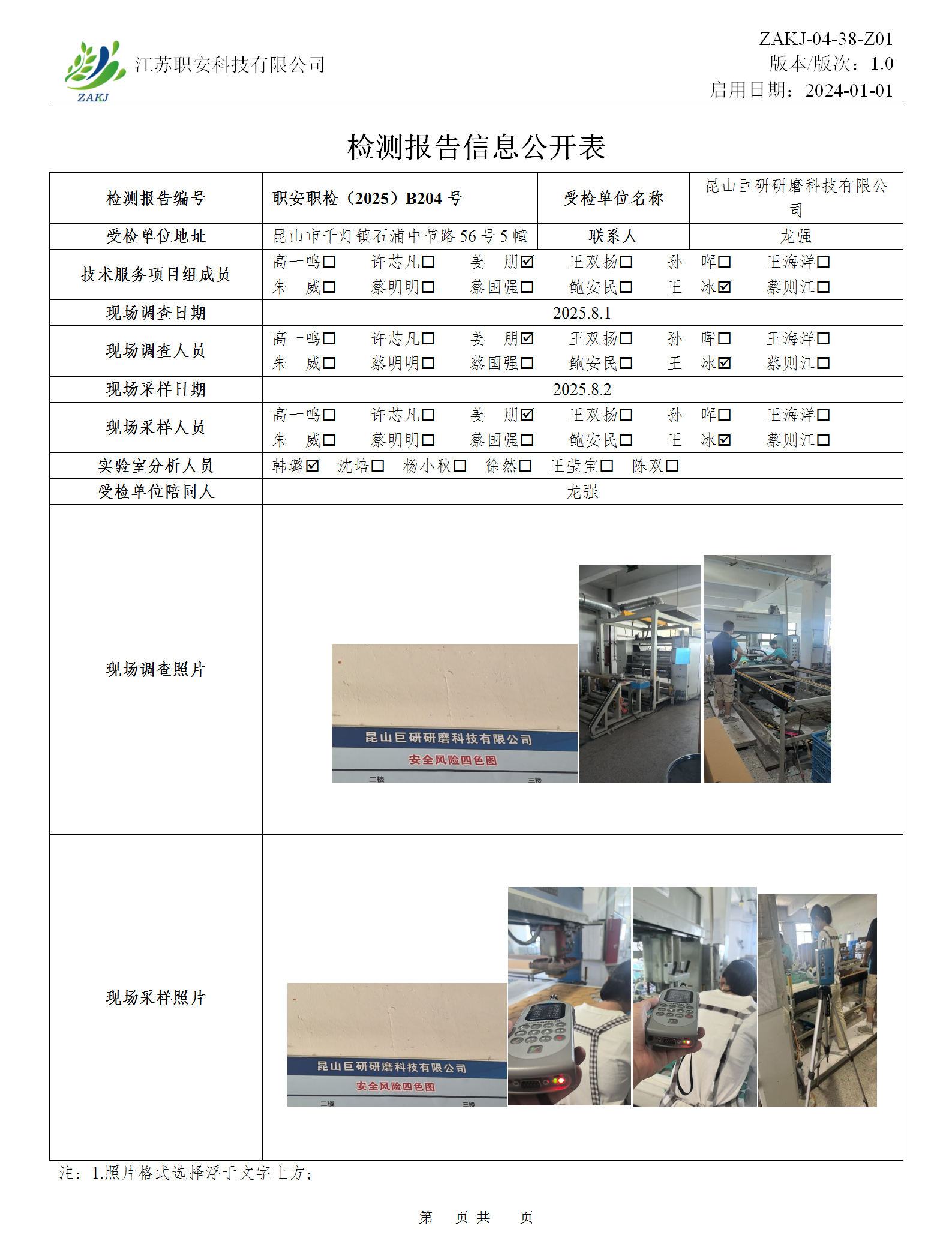 檢測報告公示
