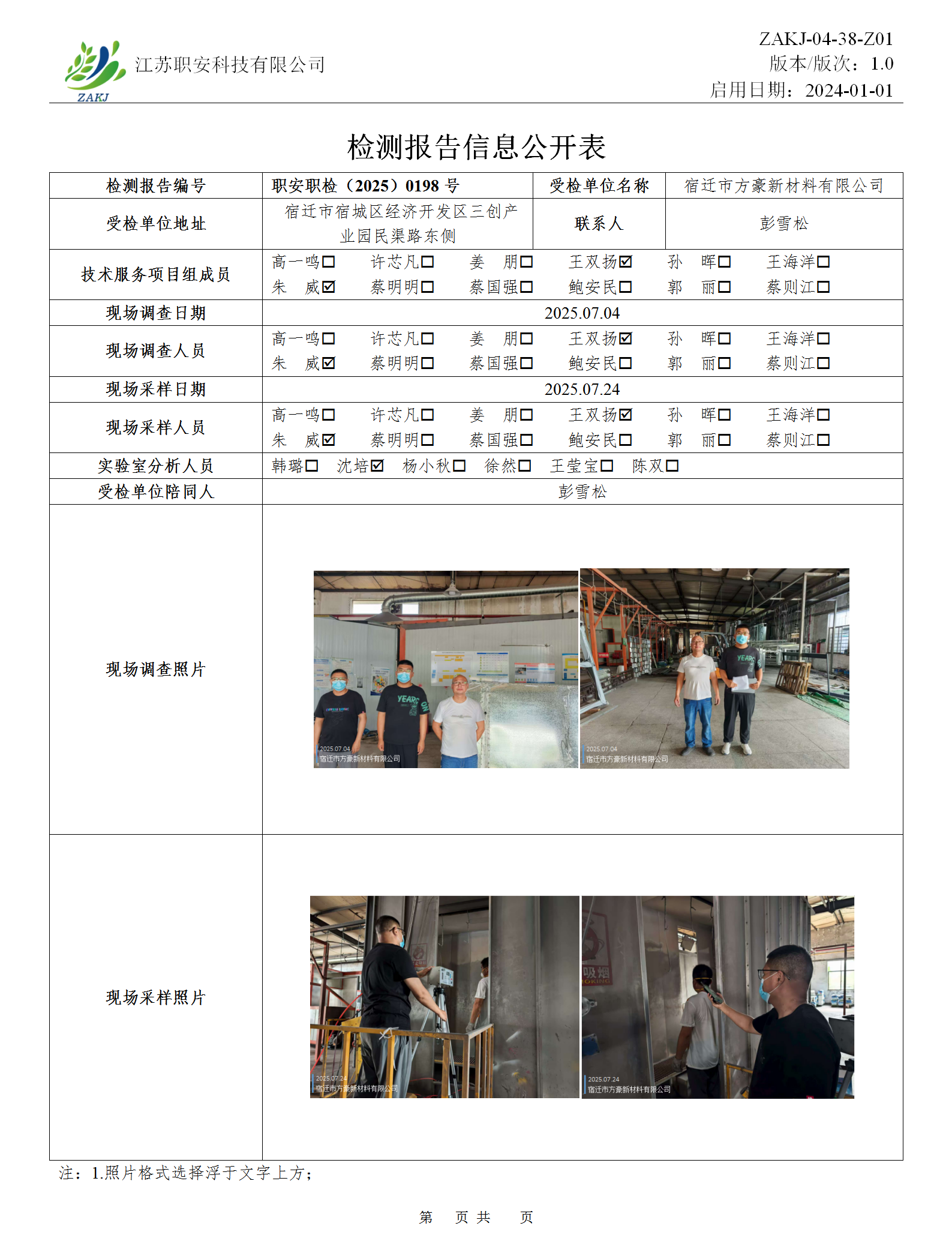 檢測報告公示