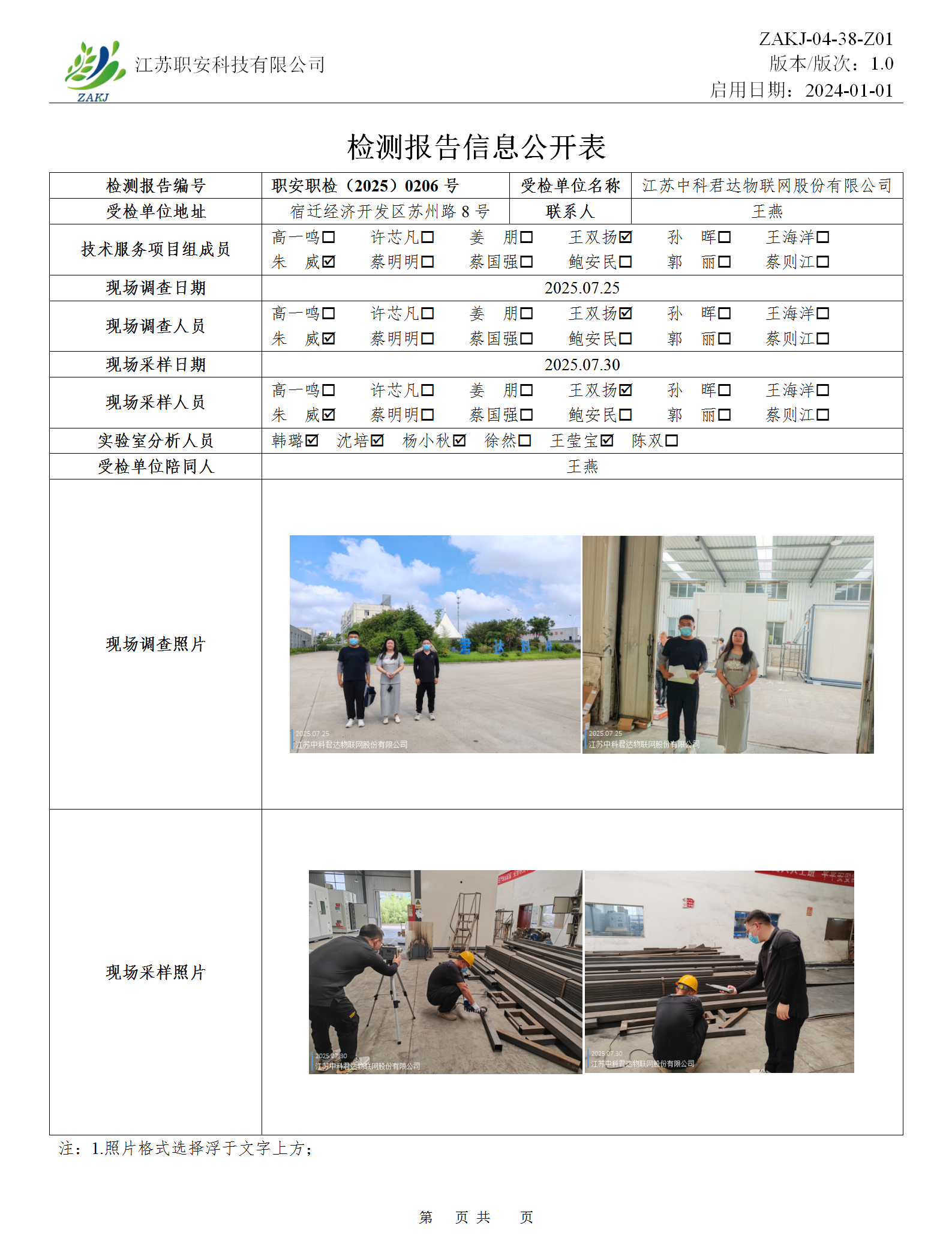 檢測(cè)報(bào)告公示