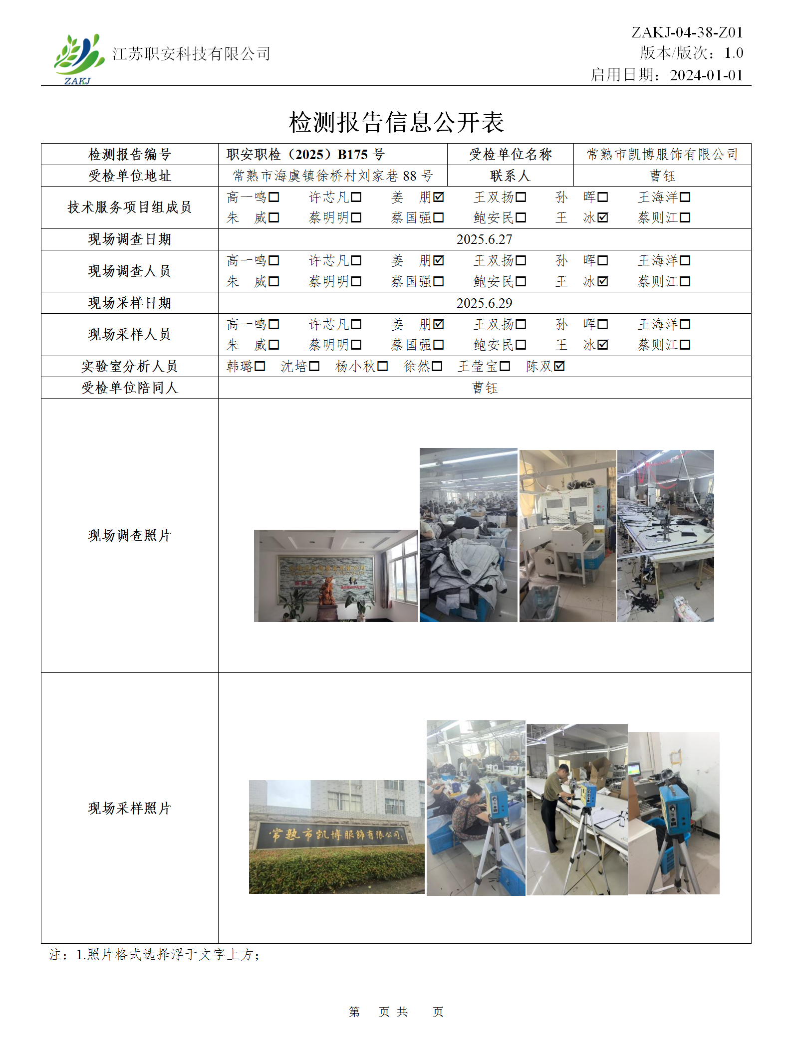 檢測報告公示