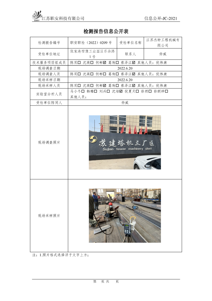 檢測報告公示