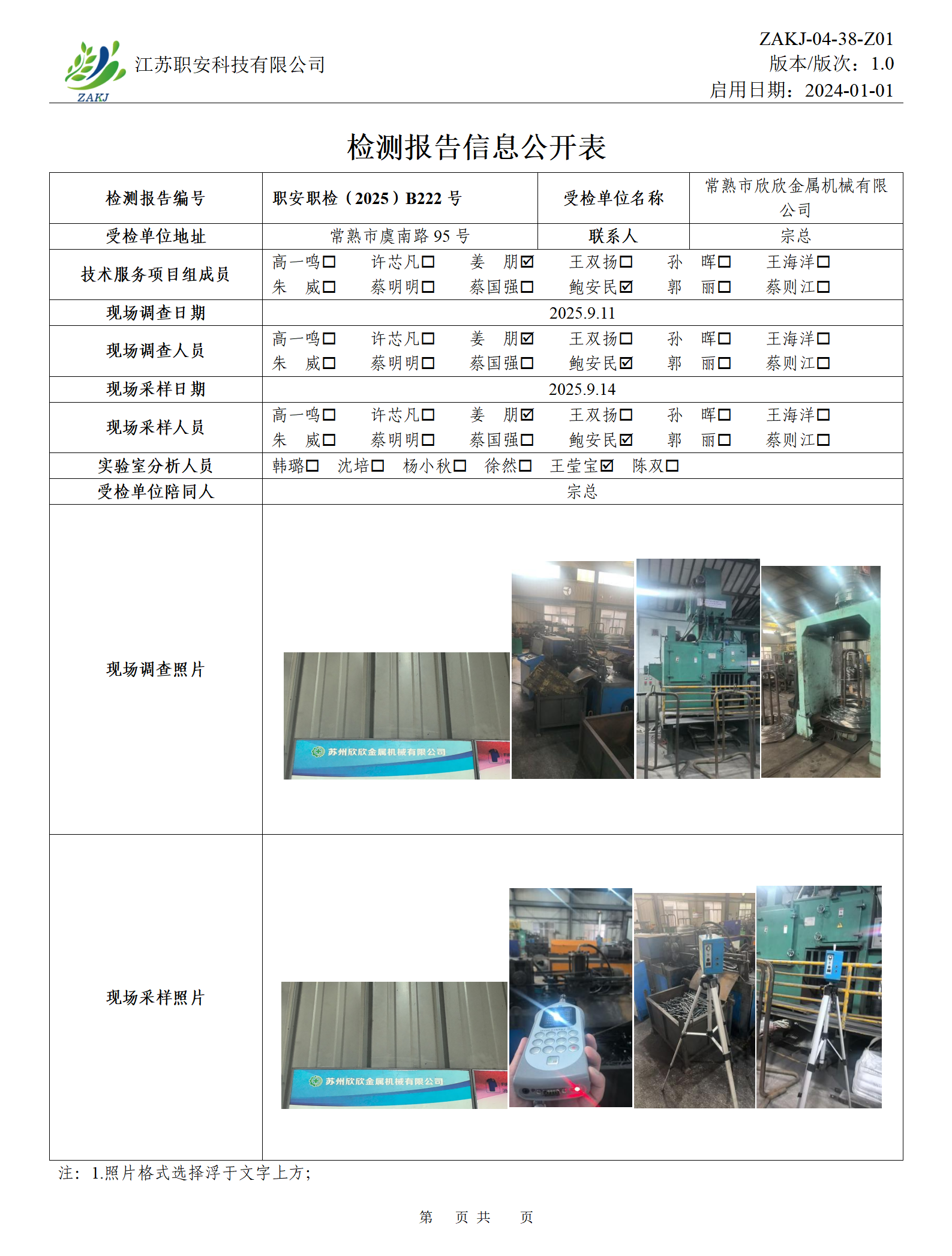 檢測報告公示