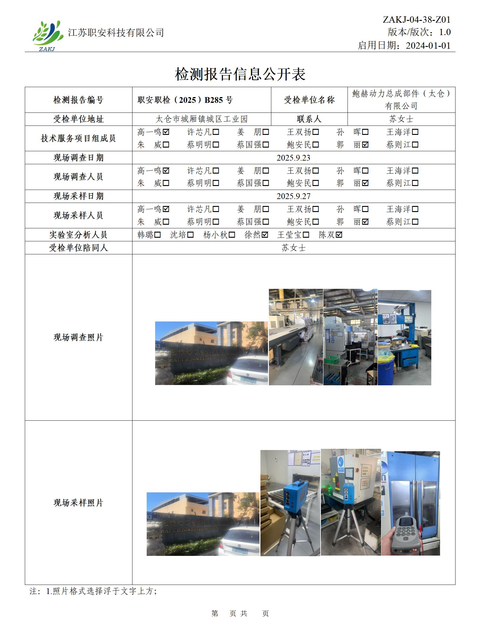 檢測報告公示