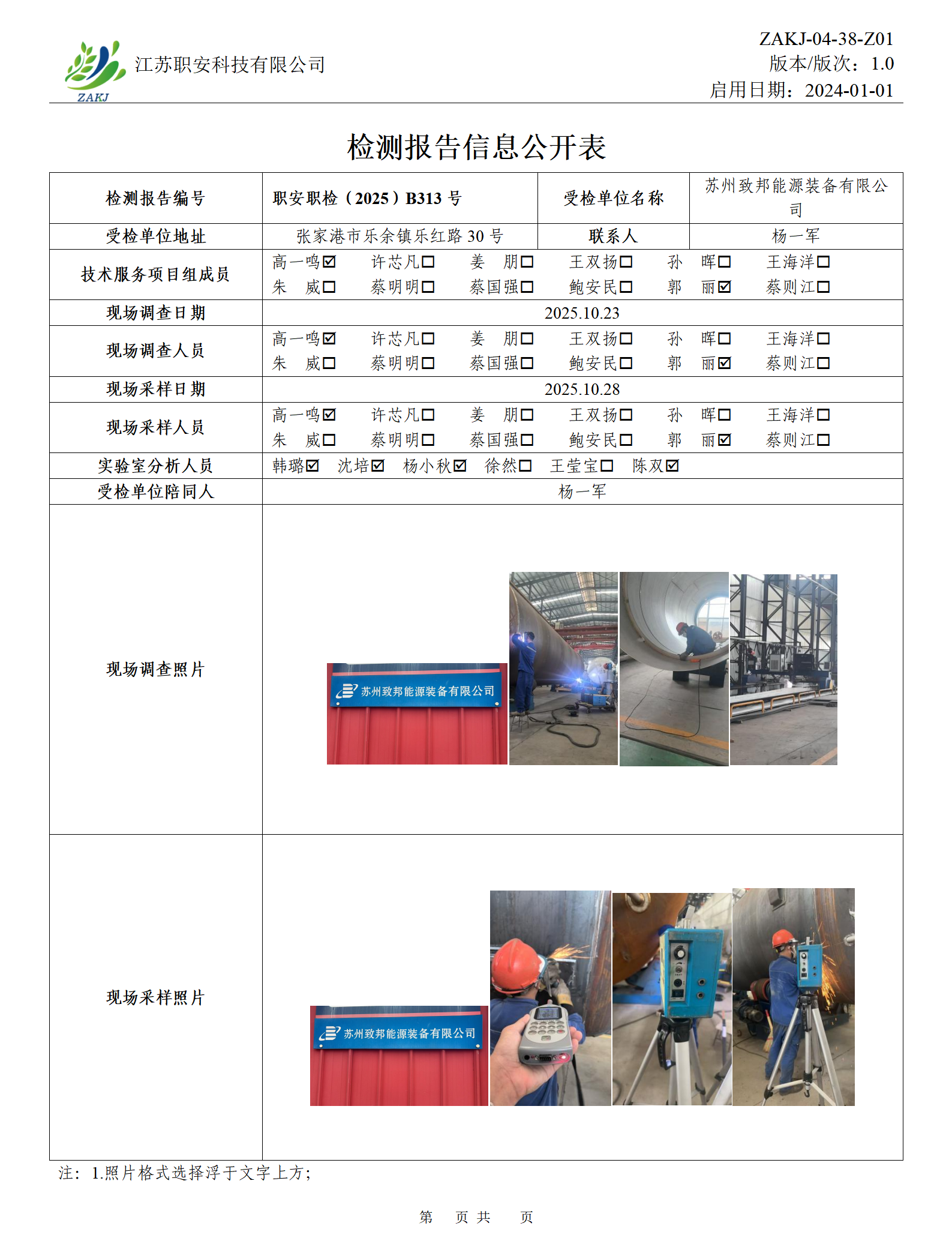 檢測報告公示