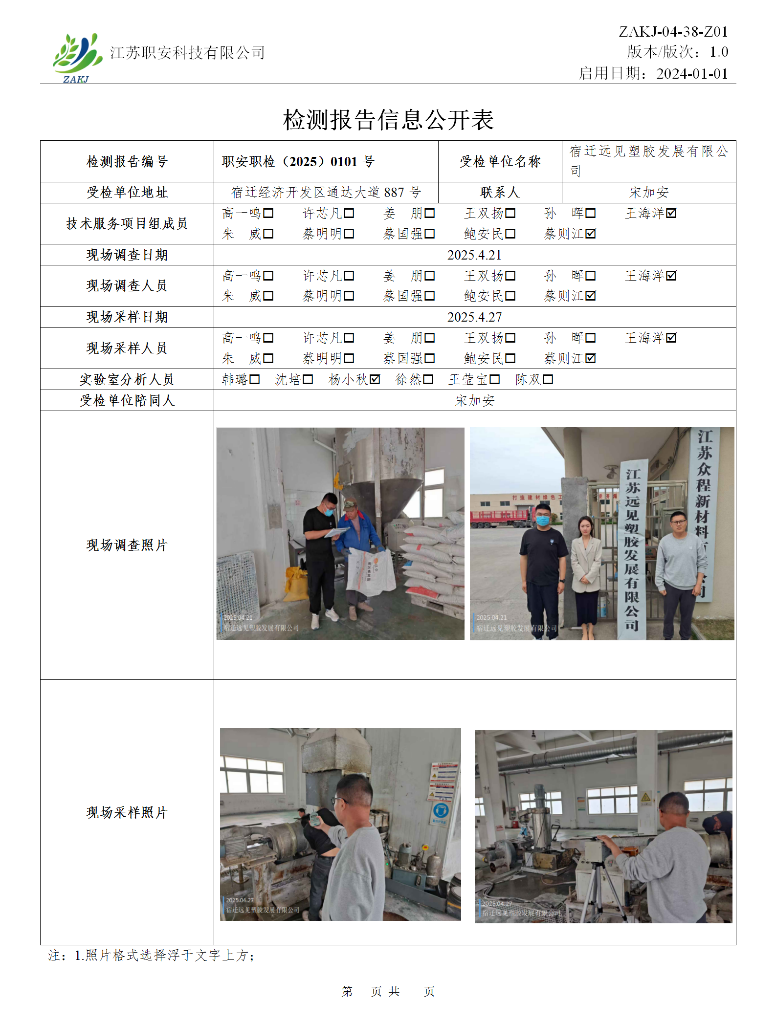 檢測報告公示